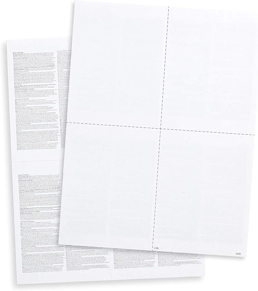 This 100 Pack W2 Forms have one vertical center perforation and one horizontal center cross-perforation. print and mail your 4 part W2 forms (2024) with our blank 2024 4-Up tax forms for reporting wages and tips. Each sheet is perforated into 4 sections, with instructions printed on the back side of each section.
