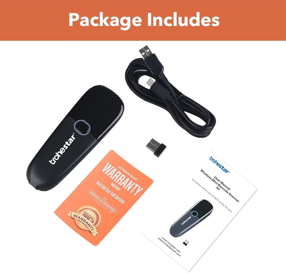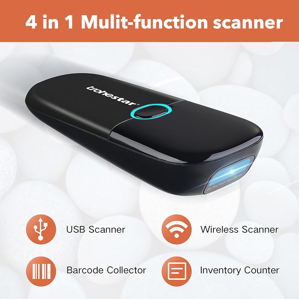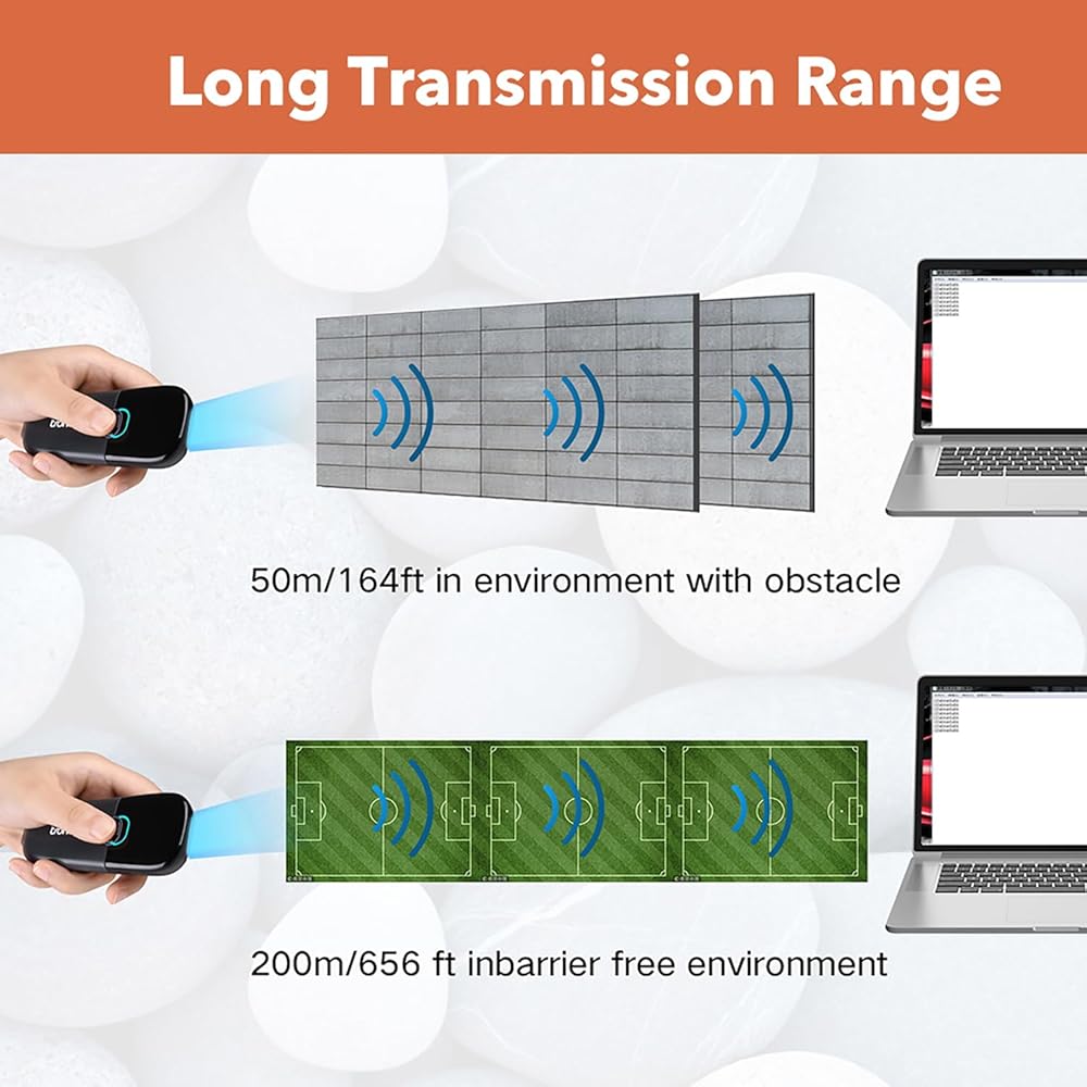 ماسح الباركود الخطي 3 في 1: سلكي، ولاسلكي، وبلوتوث، ومتصل بشكل مستمر عبر البلوتوث. تختلف مسافة الإرسال حسب البيئة. 200 متر/656 قدم للوضع اللاسلكي، وما يصل إلى 100 متر/328 قدم لوضع البلوتوث.