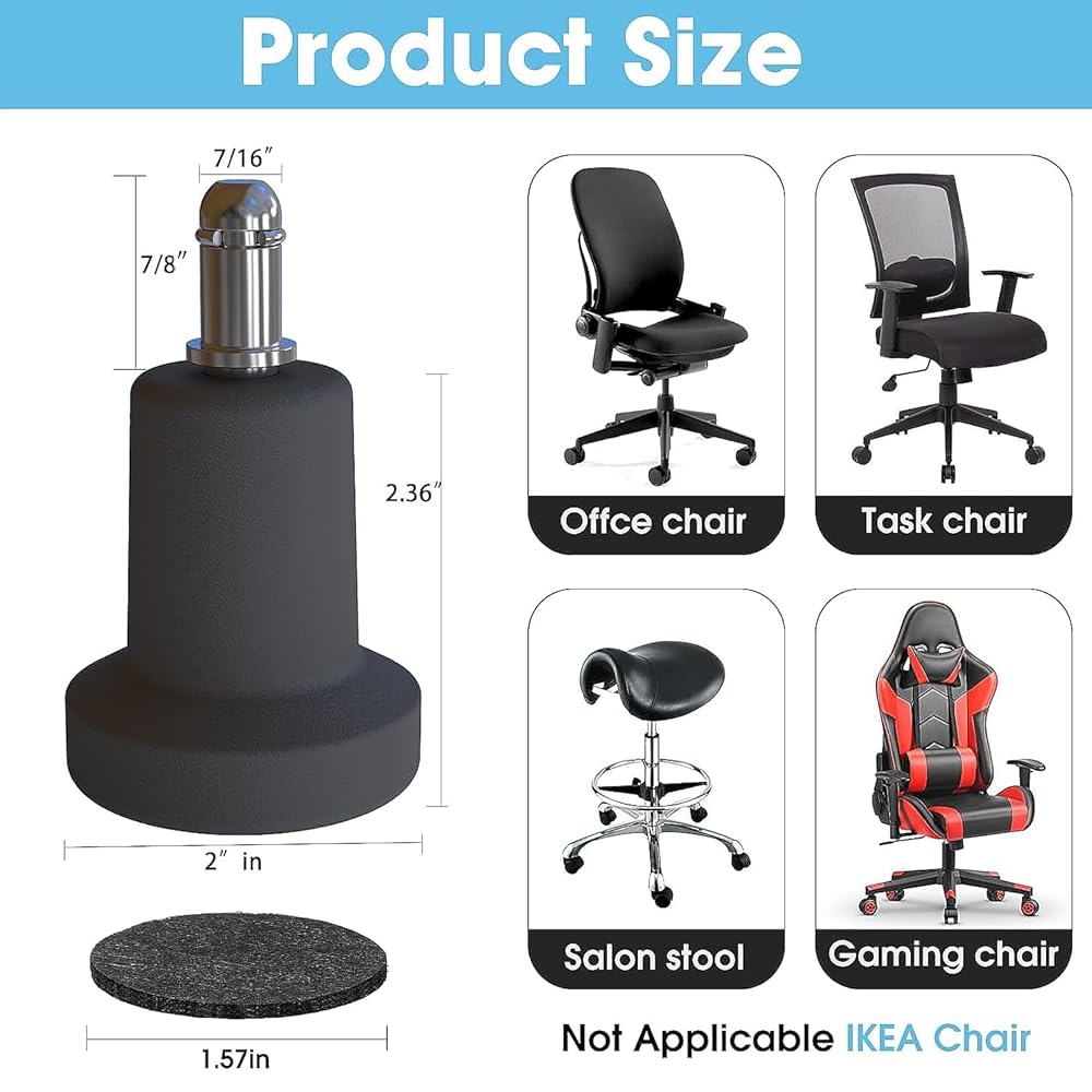 أكثر أمانًا من العجلات: شرائح الكرسي التي تحول كراسي المكتب ذات العجلات إلى كراسي ثابتة (كراسي الألعاب، كراسي المكتب)، تمنع الانزلاق وتعمل بشكل أكثر كفاءة، وتوفر مقعدًا أكثر أمانًا لأولئك الذين لديهم صعوبة في الدخول والخروج من الكرسي عندما يرتفع الكرسي من طاولة أو مكتب