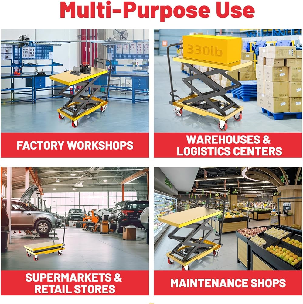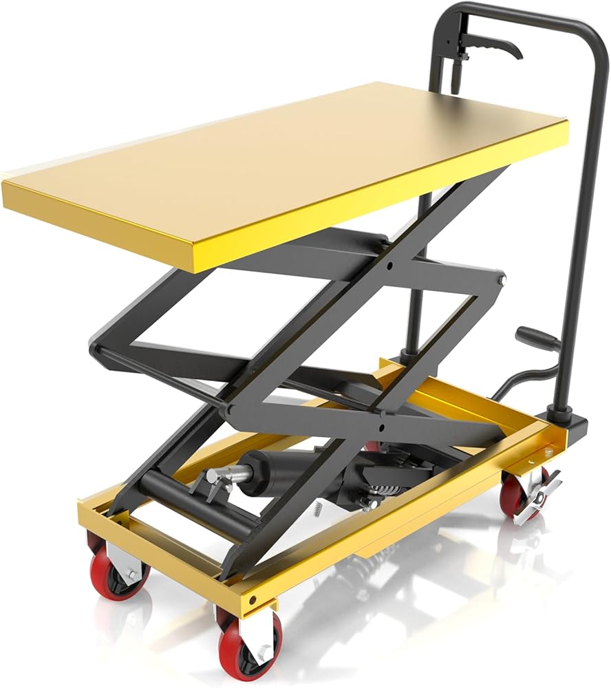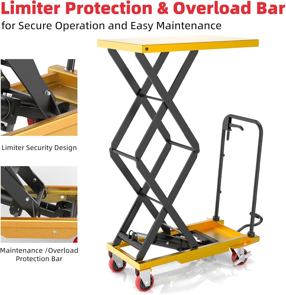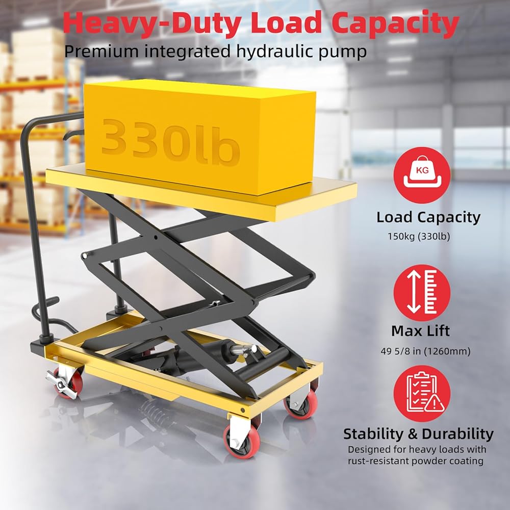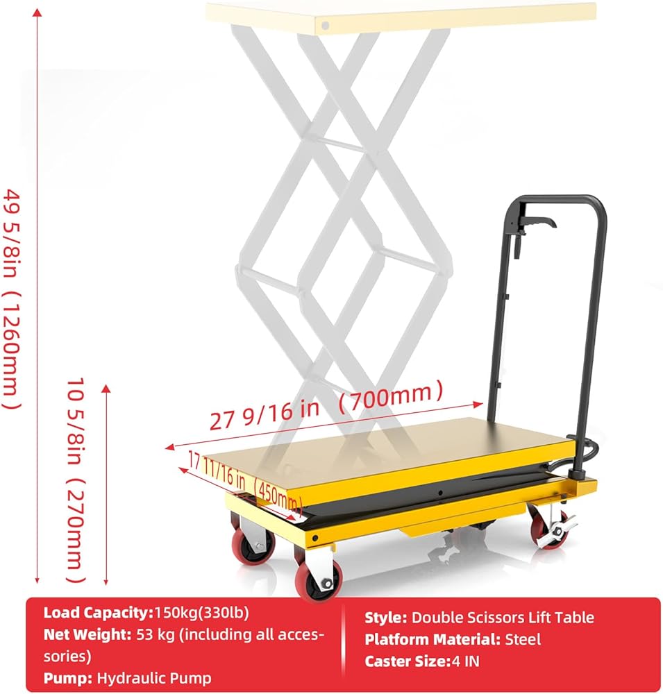 عربة رفع هيدروليكية ZKH، سعة 330 رطل، أقصى ارتفاع للرفع 49.6 بوصة، طاولة رفع بمقص واحد مع عجلات قفل وشريط التحميل الزائد للعمليات الآمنة، مثالية للتعامل مع المواد ورفع الشحن