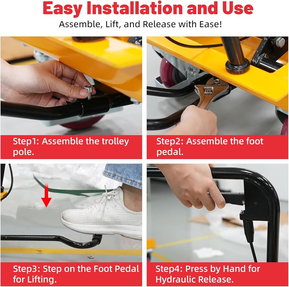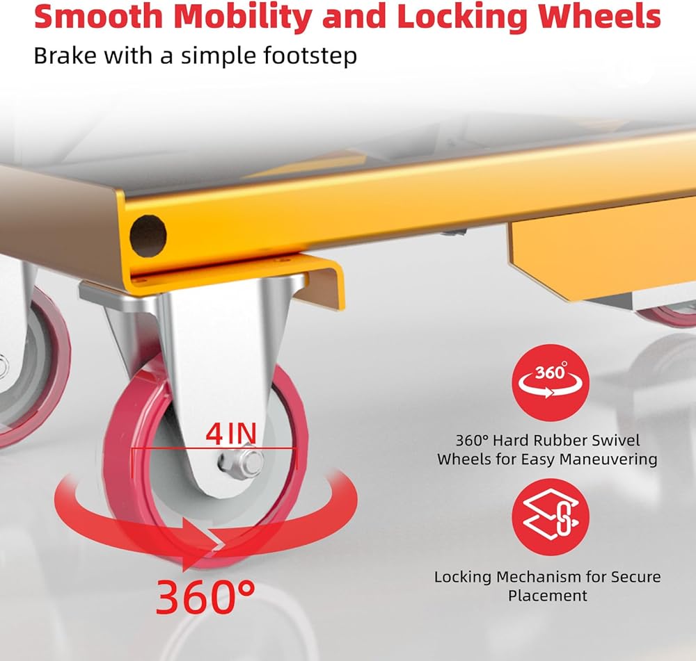 • تشغيل بدون جهد: تتميز عربة طاولة الرفع الهيدروليكية ZKH بدواسة قدم واسعة ورافعة تحرير هيدروليكية لتشغيل سهل ورفع وخفض سلس. كما أنها تأتي مع عجلات PU متينة تتميز بآلية قفل، مما يضمن الثبات أثناء التشغيل، ويمنع الحركة غير المقصودة