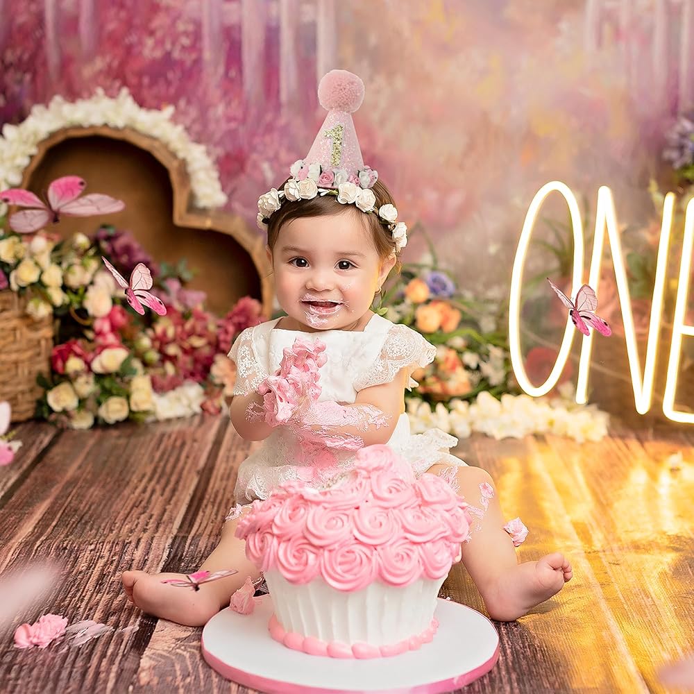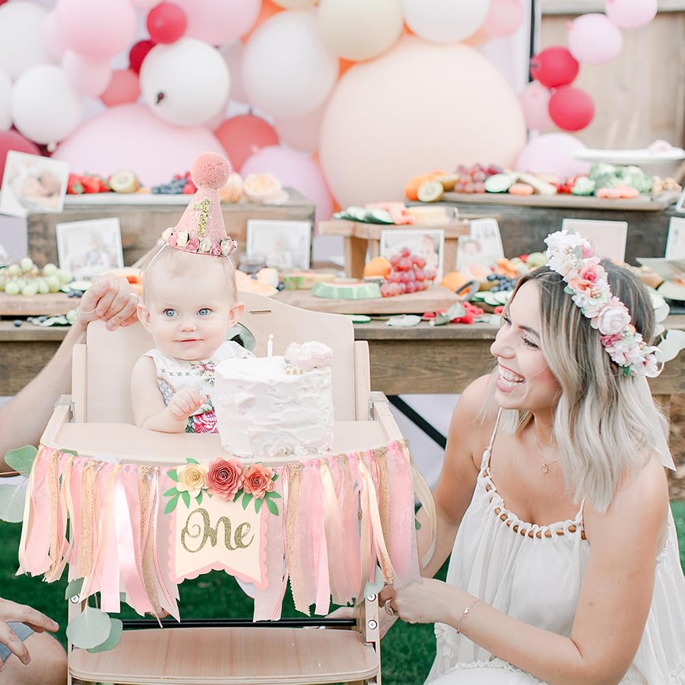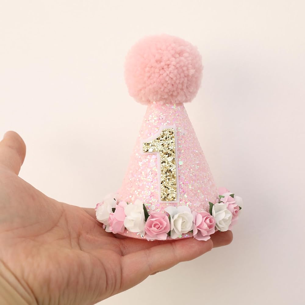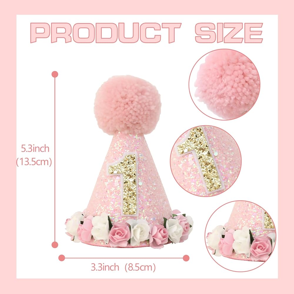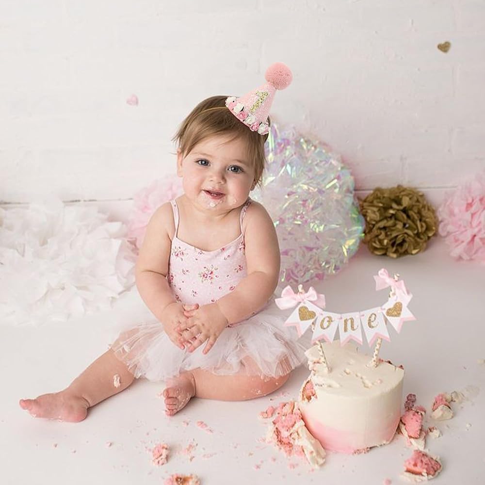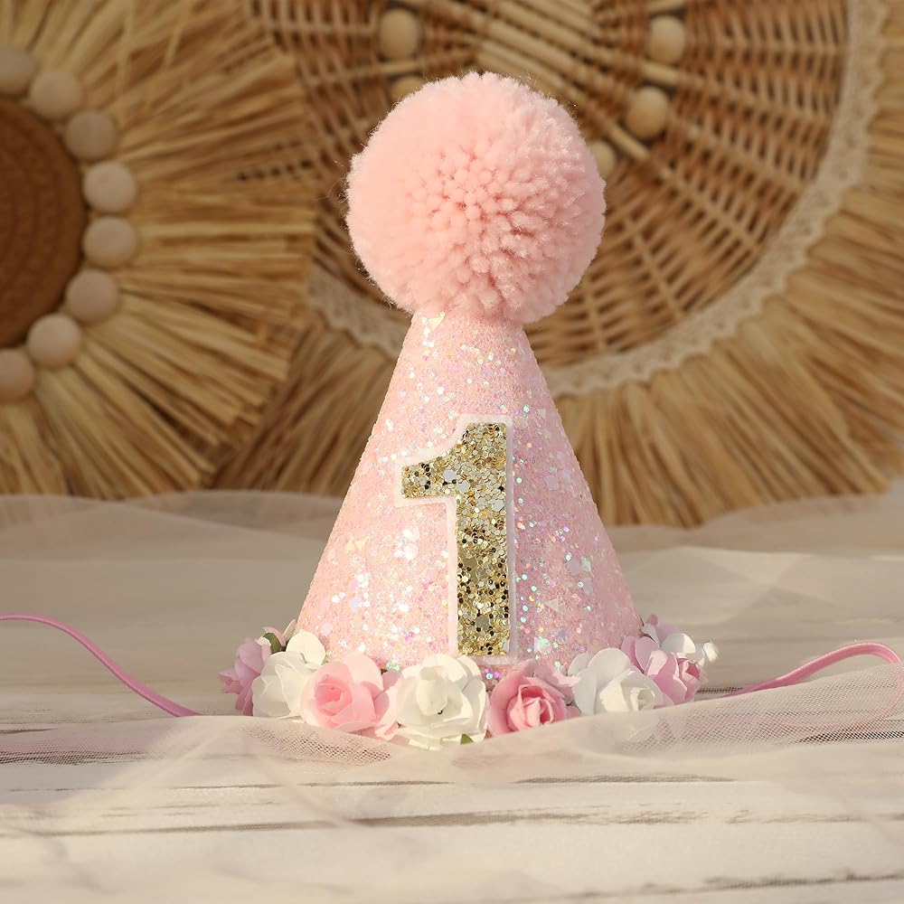 قبعة بوهو الوردية لعيد الميلاد الأول على شكل زهرة وردية للأطفال والبنات والأولاد مصنوعة يدويًا من الزي الطبيعي قبعة حفلات عيد الميلاد الأولى
