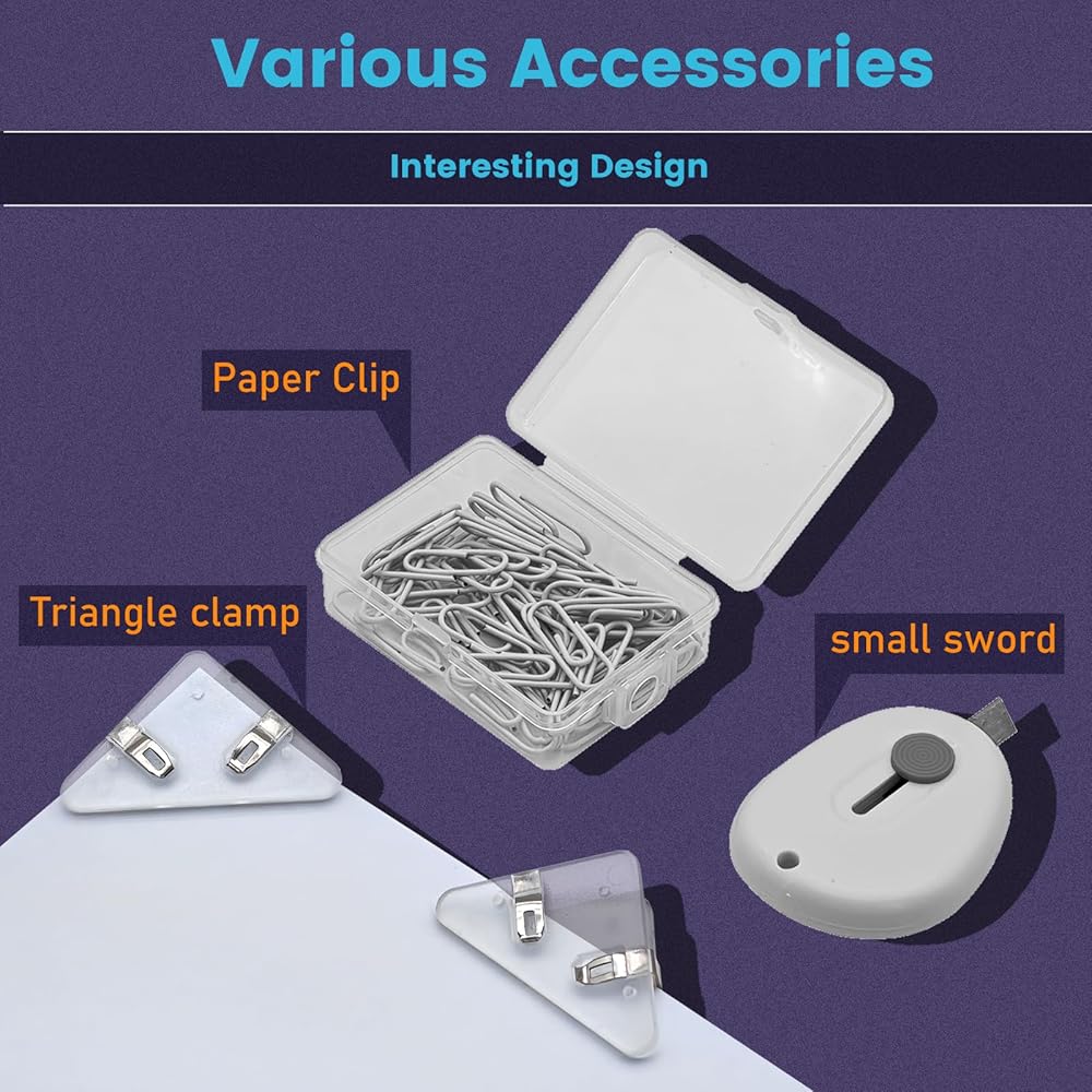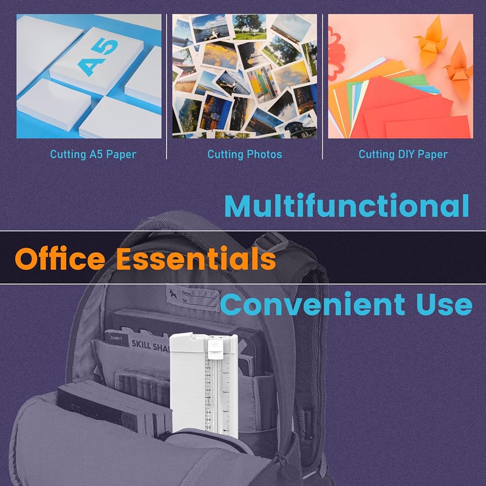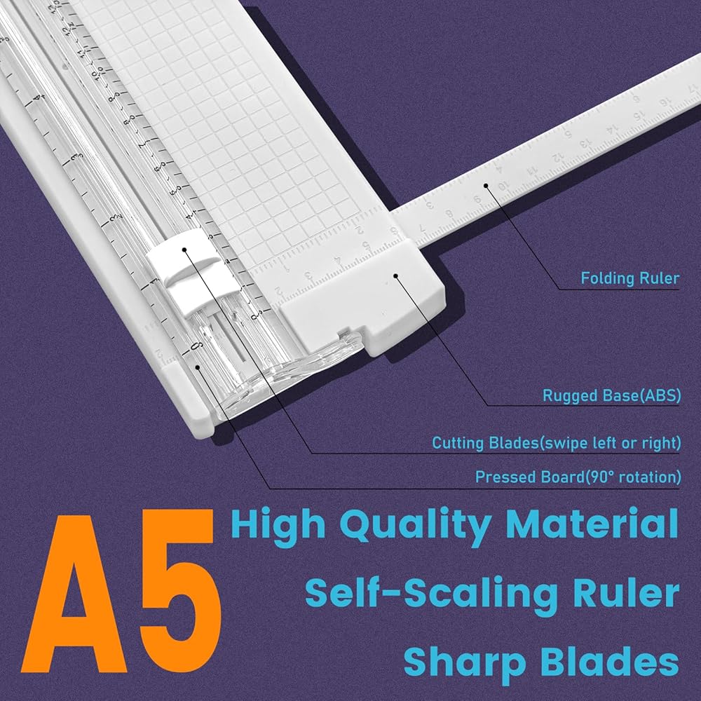• Paper trimmer :Compact and portable paper slicer with a sharp blade and built-in scale, perfect for cutting A5 paper, photos, postcards, and greeting cards.