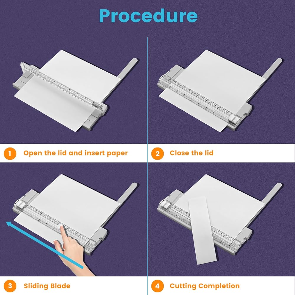 • Ideal for students, teachers, and office professionals, this paper cutter machine can easily slice through multiple sheets at once.