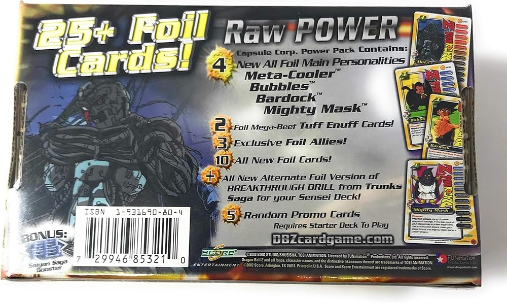 Main Personalities: Meta-Cooler, Bubbles, Bardock, Mighty Mask x2 Foil Tuff Enuff Cards x3 Foil Allies X10 Foil Cards x1 Foil Alternate Breakthrough Drill x5 Random Promos x1 Saiyan Saga Booster Pack