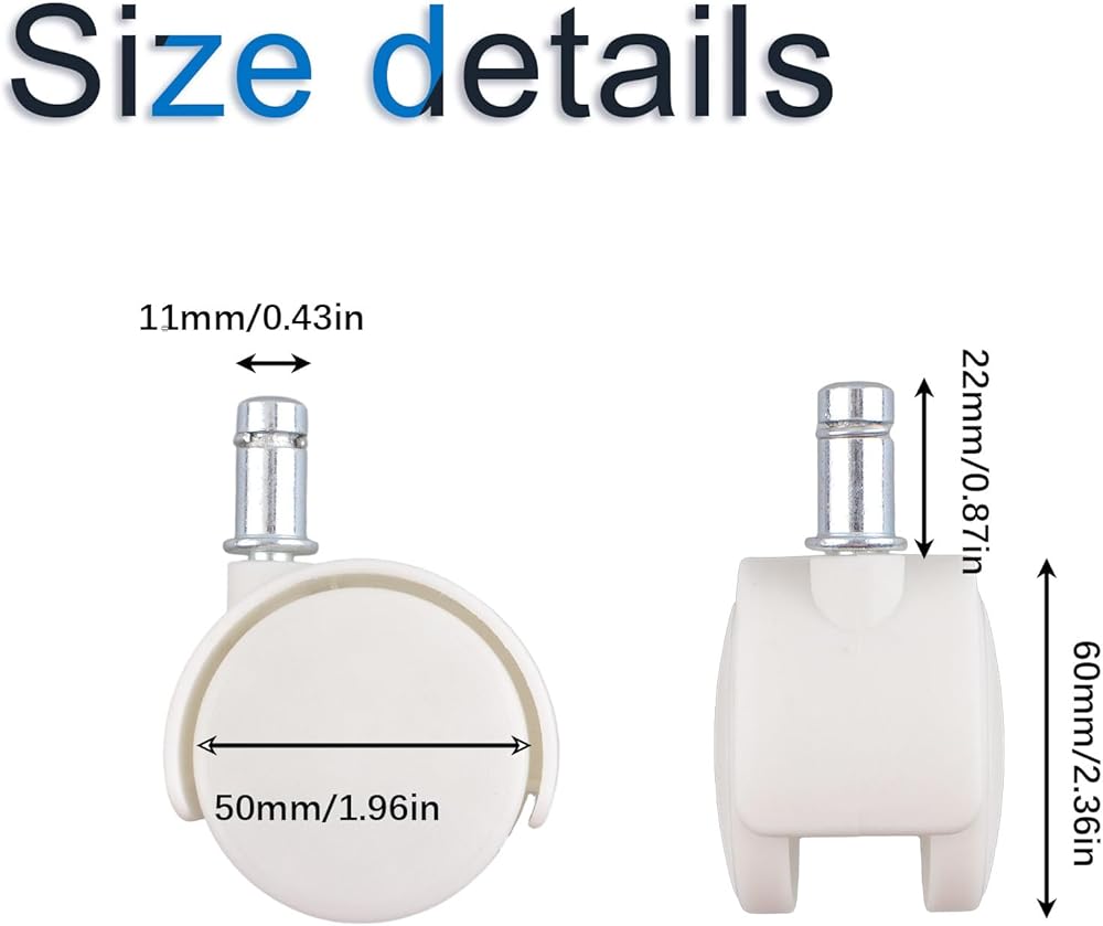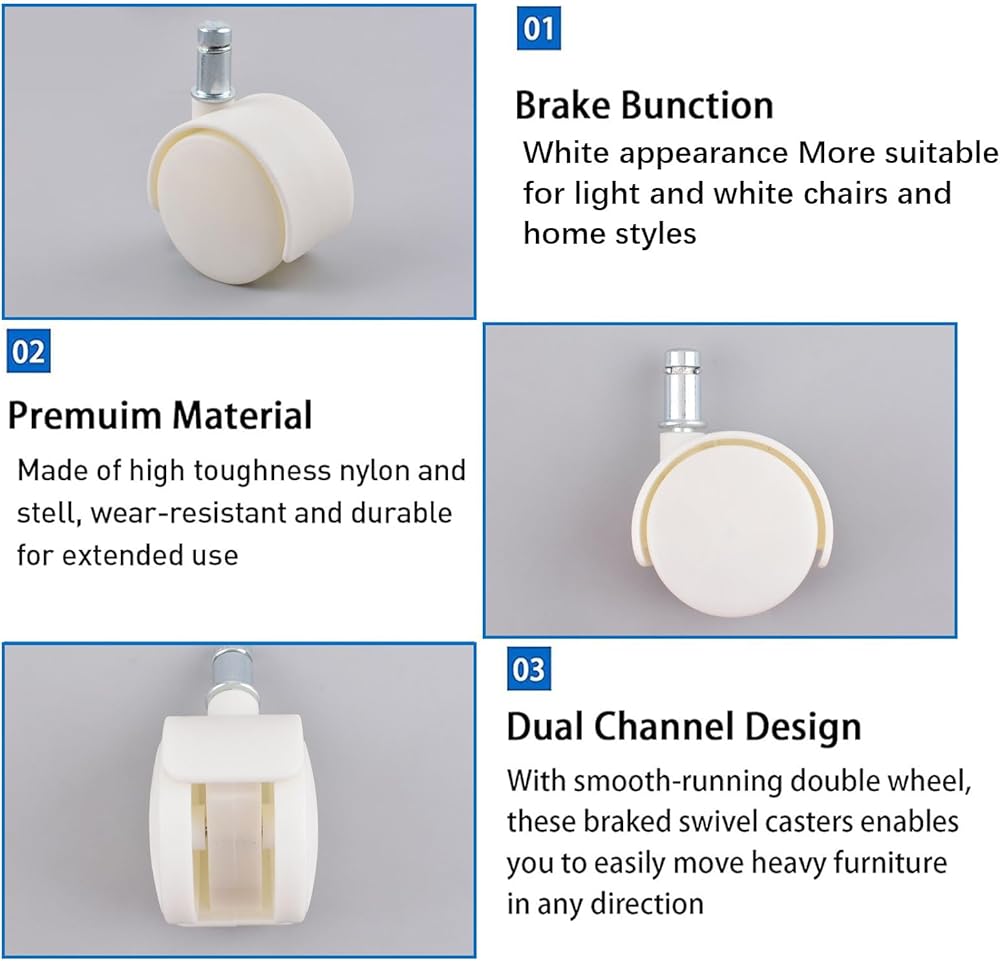 • 【Quantity Size】Package includes 5 pieces white threaded stem caster wheels and matched threaded nuts. The size is as picture shows.