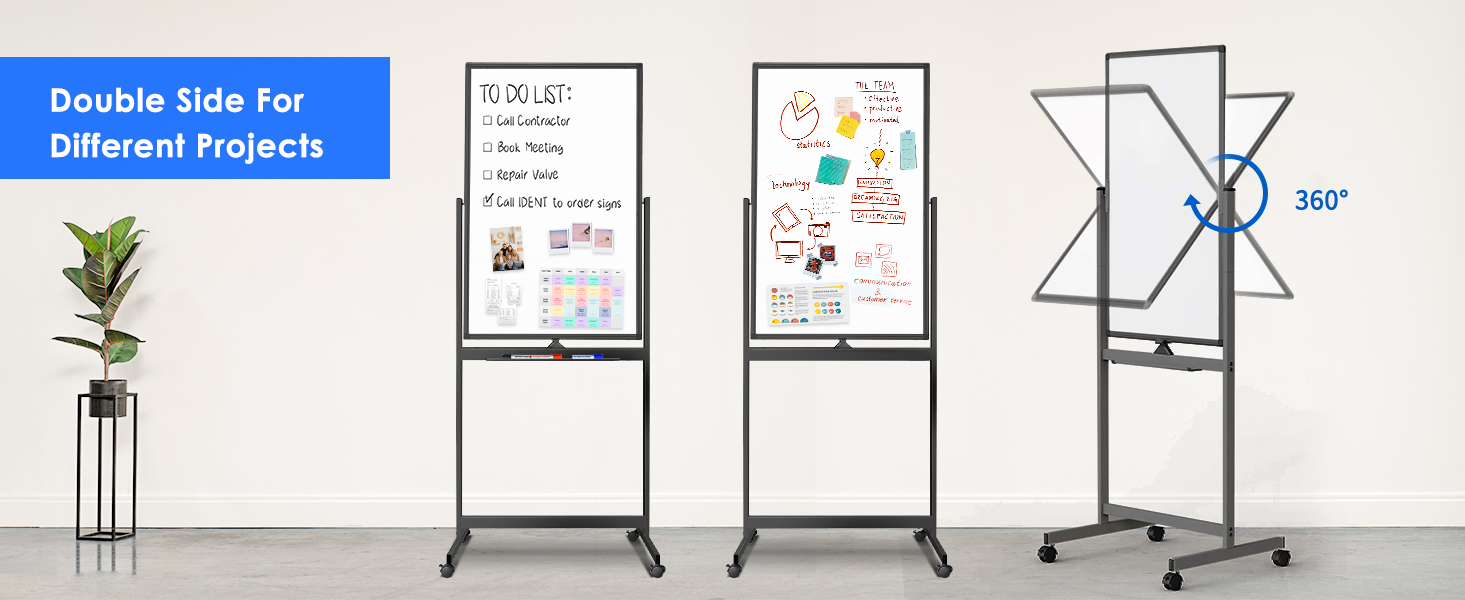 • عجلات دوارة وقابلة للقفل 360 درجة: يتيح لك جهاز الشظايا قلب اللوحة البيضاء بسهولة، مع الانتهاء من الدوران 360 درجة في خطوة واحدة. تم تجهيز السبورة البيضاء ذات الوجهين maxtek بـ 4 عجلات عالمية لسهولة الحركة. توجد عجلات مزودة بفرامل قفل، بحيث يمكن قفل العجلات، مما يجعلها ثابتة عند الكتابة أو المسح
