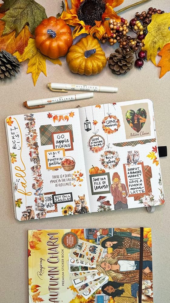 احتضن سحر الخريف: نقدم لكم كتاب ملصقات سحر الخريف لخريف 2024، وهو مجموعة مبهجة تجسد جوهر موسم الخريف المريح! كتاب الملصقات هذا المليء بالتصميمات الخريفية الساحرة يجلب سحر الخريف إلى الحياة في مخططاتك ومجلاتك وسجلات القصاصات.