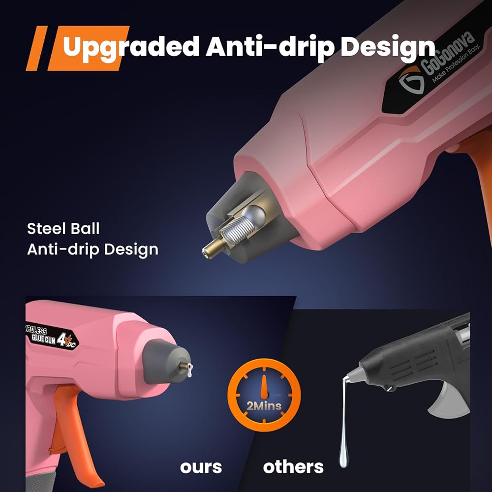 • Anti-drip & Gluing Smoothly - The innovative dispensing system of this hot glue gun greatly reduces the dripping, saves more glue sticks and keeps your workbench cleaning. Ensureing the glue discharge smoothly without any mess, providing precise application for your projects. Make your crafting work easier.