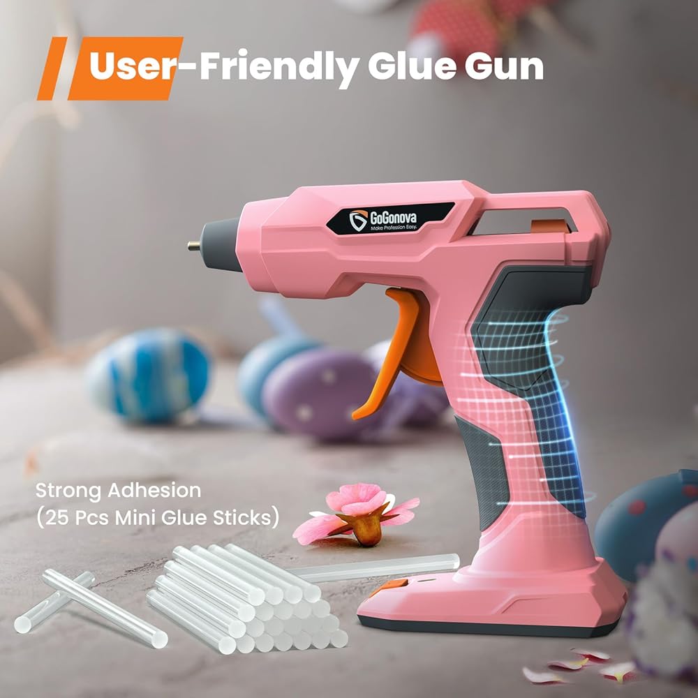 مسدس غراء لاسلكي طراز جديد 2024، مسدس غراء GoGonova 20s سريع التسخين ومضاد للتنقيط، مجموعة مسدس غراء ساخن قابل للشحن USB-C بقدرة 5 أمبير في الساعة مع 25 قطعة من أعواد غراء صغيرة، إيقاف تشغيل ذكي، وردي