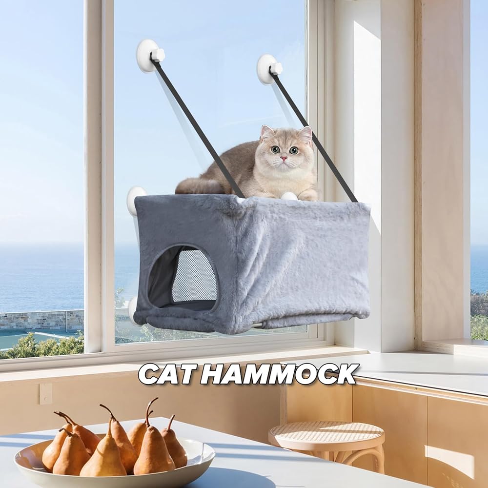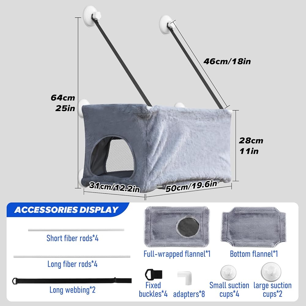 【Comfortable Design】Constructed with soft fleece for warmth, the cat window seat features a safe, scratch-resistant cloth cover that is removable for machine washing. The fiber rod frame is lightweight yet sturdy