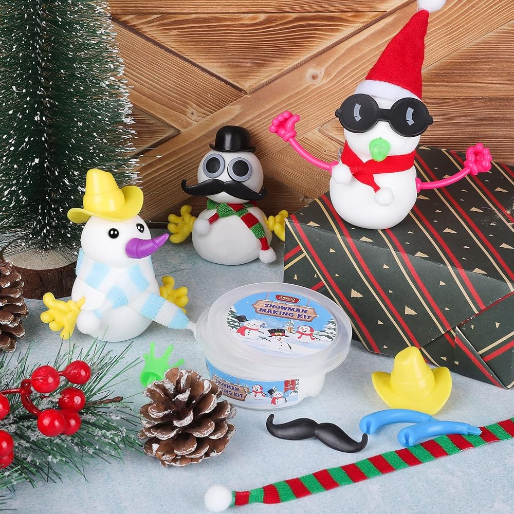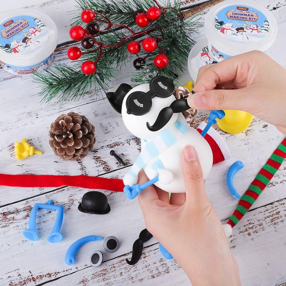 Aneco 12 حزمة عيد الميلاد بناء رجل ثلج النمذجة الطين عيد الميلاد DIY الحرفية عدة الهواء الجاف ثلج تزيين عدة الشتاء ثلج هدية اللعب لزينة عطلة عيد الميلاد