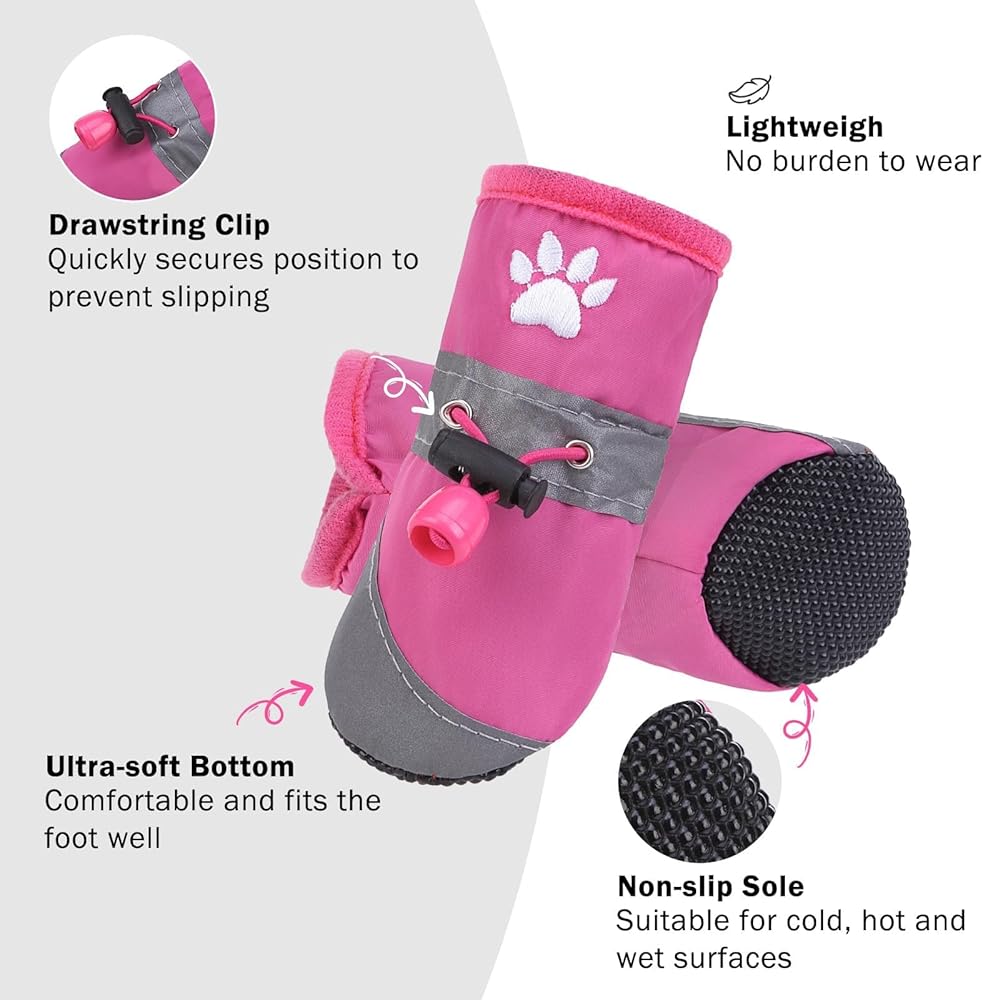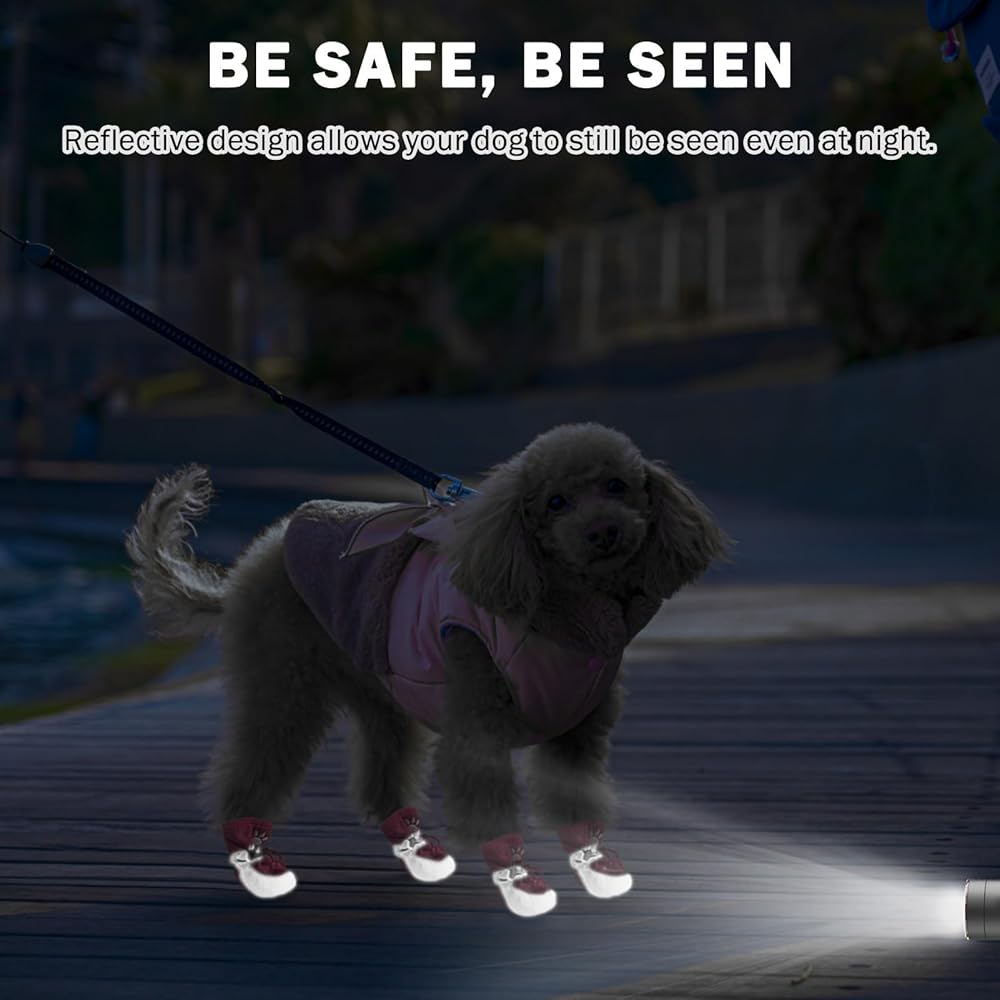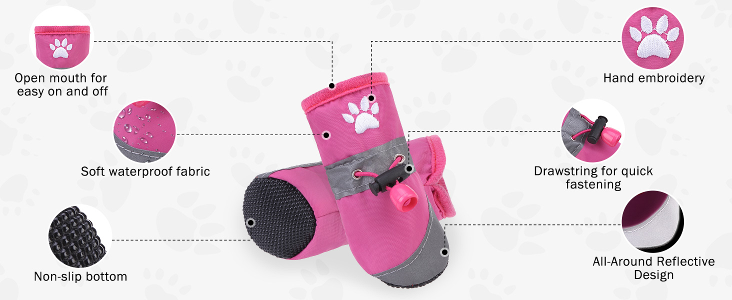 أحذية ناعمة ومريحة لمشي الكلاب: أحذية ناعمة وخفيفة الوزن ومريحة لمشي الكلاب: الجزء الداخلي من الحذاء الصغير مملوء بقطيفة رقيقة فائقة النعومة لتوفير الراحة وخفة الوزن. إنه يحمي أقدام كلبك ويبقيها جافة ومرتاحة في الطقس البارد أو أيام الصيف الحارة عندما يركض كلبك في الخارج أو يلعب في الداخل.