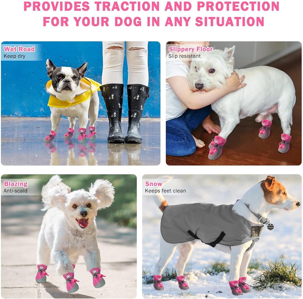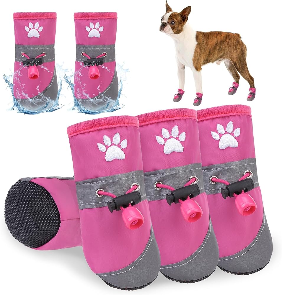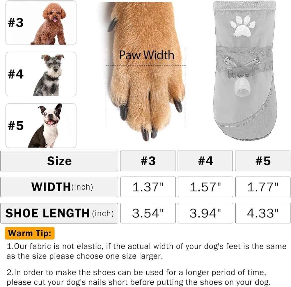 أحذية للكلاب المتوسطة الحجم: #5 عرض المخالب 1.77 بوصة، طول المخلب 1.85 بوصة، طول الحذاء 4.33 بوصة. يرجى قياس أقدام كلبك وفقًا لجدول المقاسات الخاص بنا قبل الشراء.