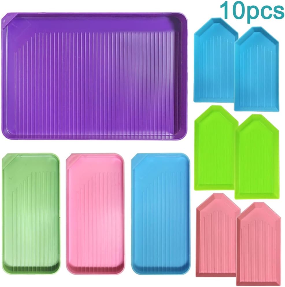 10 قطع من صواني الفن الماسي، مجموعة صواني الرسم الفني الماسي من FineGood 3 مقاسات، صواني فرز الخرز، ملحقات تخزين الفن الماسي للحرف الفنية اليدوية
