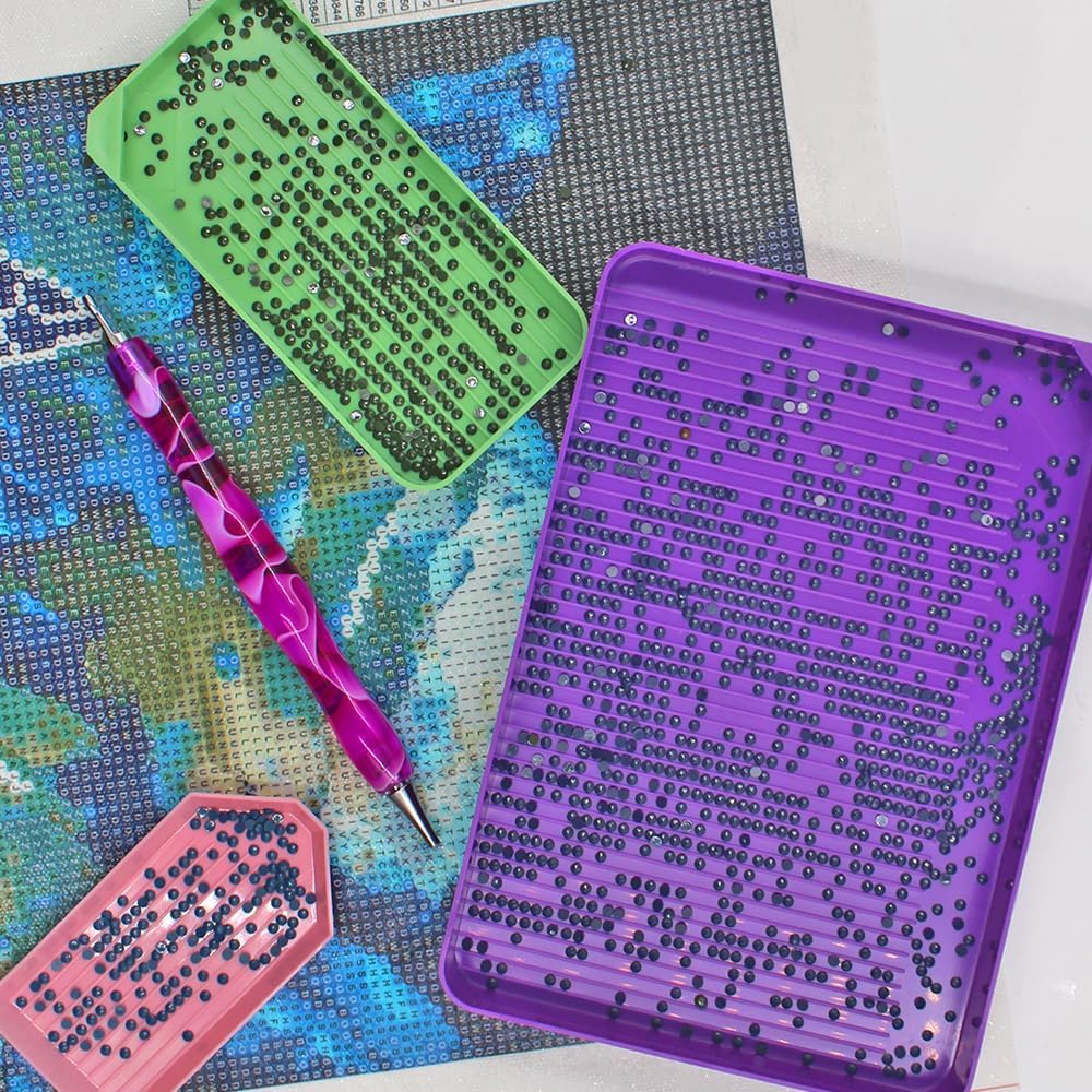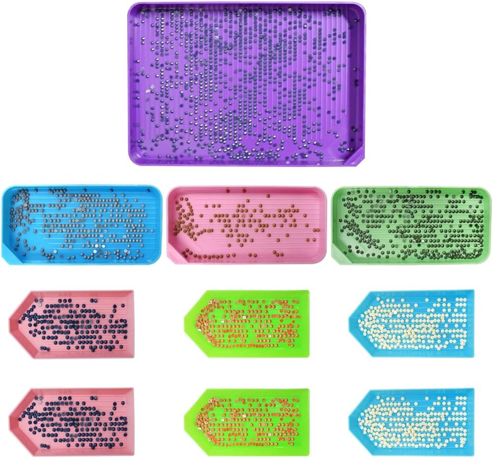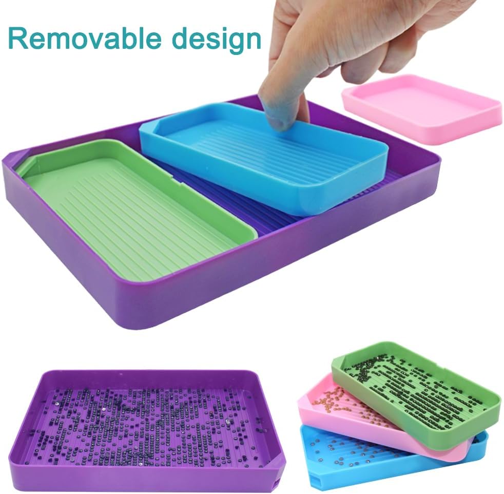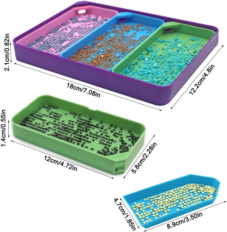 - ما ستحصل عليه: 1 صينية ماسية كبيرة، 3 صواني وسطية و6 صواني أصغر. صواني حمل الماس المتعددة تجعل عمل الماس الخاص بك أكثر ترتيبًا.