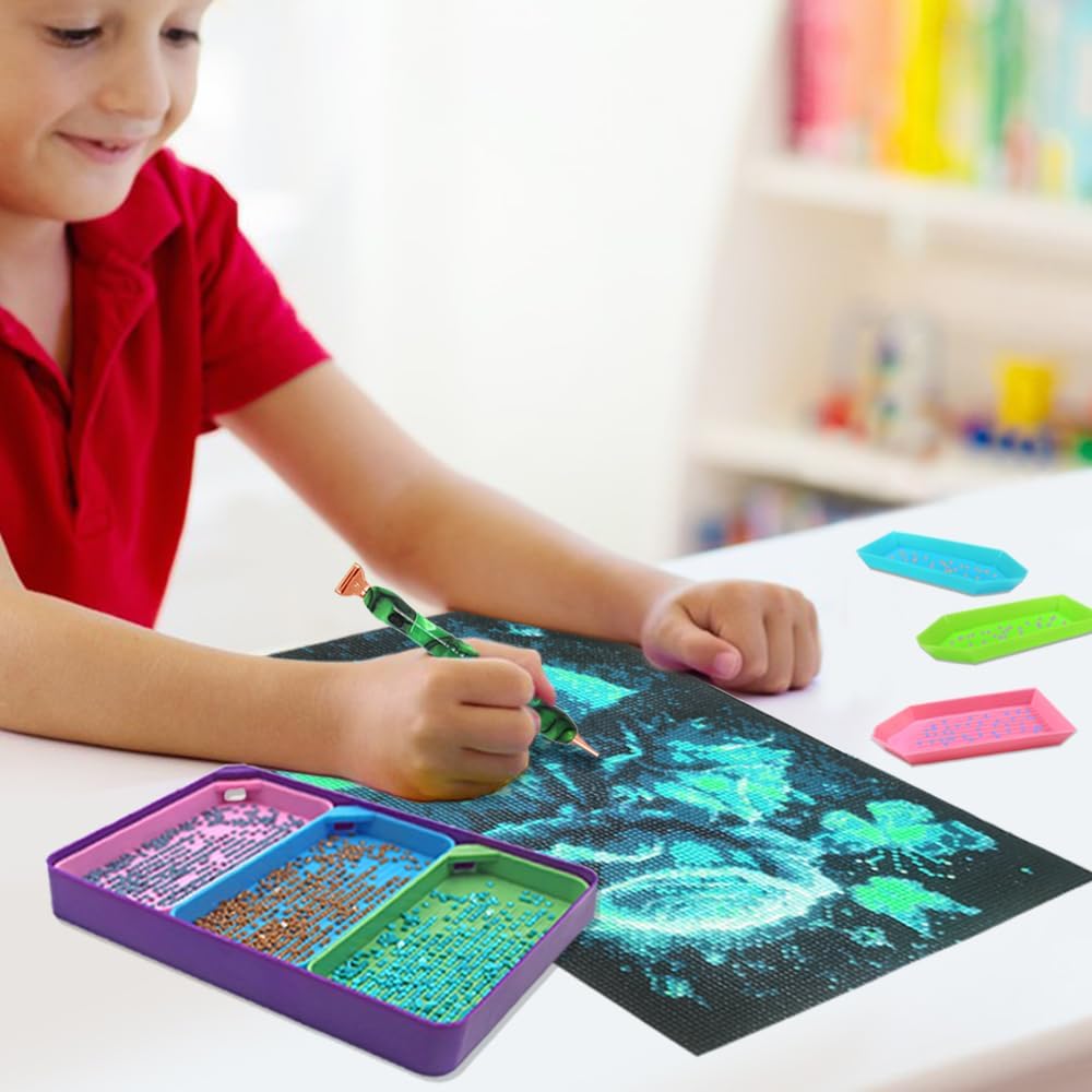- حفر سريع: كل صينية رسم فنية ماسية لنوع واحد من الخرز، يمكن فرز ألوان مختلفة من الخرز بشكل منظم، مما يجعل اللوحة الفنية الخاصة بك تعمل بكفاءة.