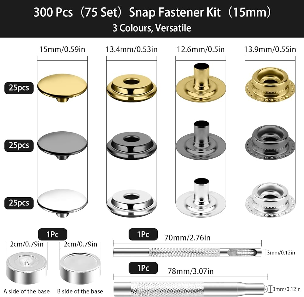 Smooth Operation: The snap kit easy to install with fabric base components, no sewing required for a safe button snap. Simplify your sewing process with our easy-to-use button snap kit, perfect for beginners and experienced crafters alike. Can be easily attached to screws or cloths, ensuring a robust attachment suitable for hard apparent.