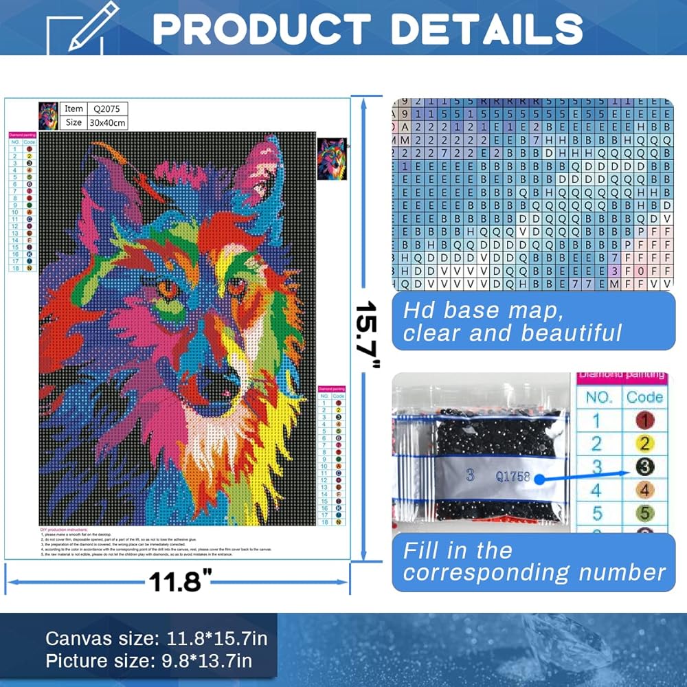 رموز واضحة: أرقام وحروف سهلة القراءة. الألوان مشرقة ونابضة بالحياة، وصورة جميلة. جميع اللوحات الماسية الخاصة بنا مصممة يدويًا، وتستعيد الصورة الأصلية قدر الإمكان.