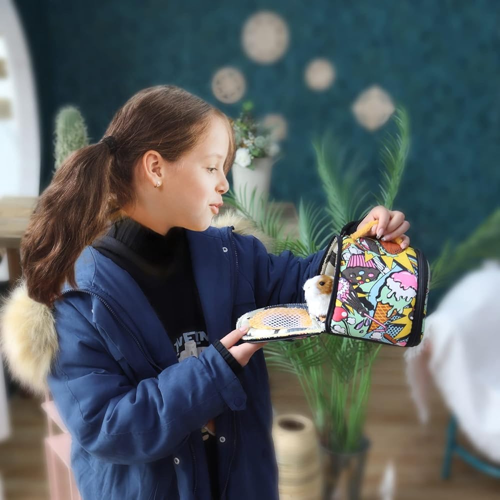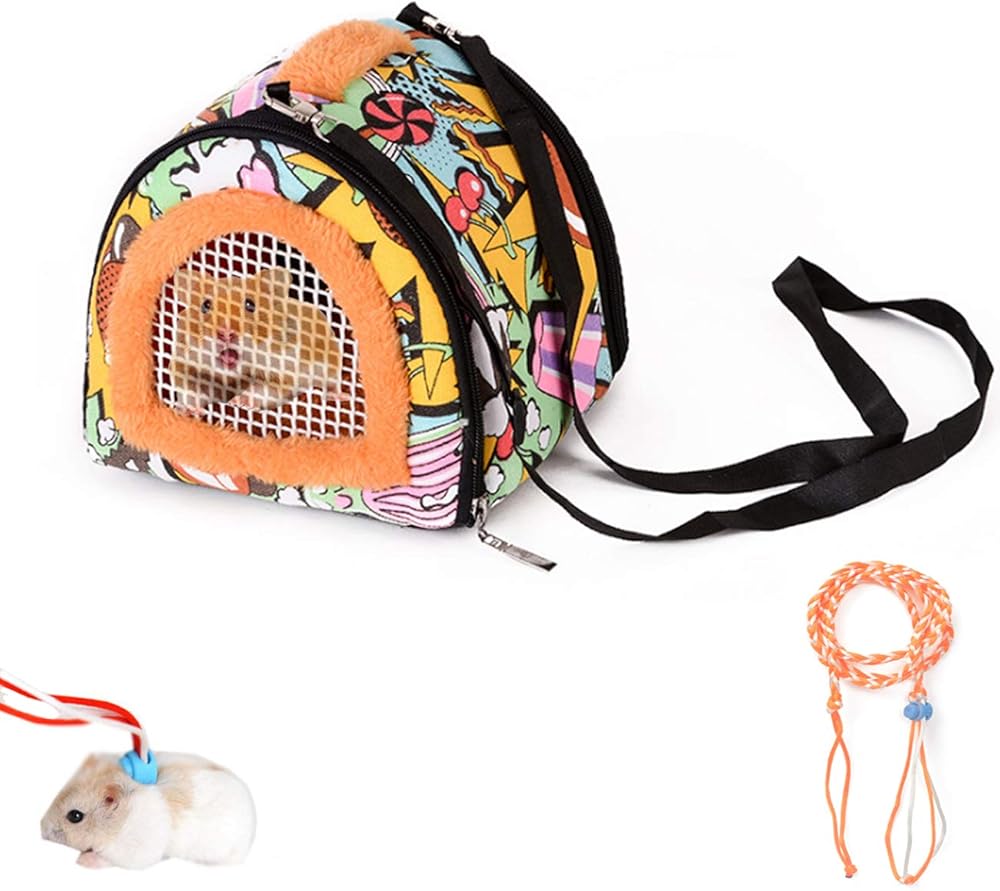 حقيبة حمل هامستر من لينيفار، قابلة للتنفس وسهلة الحمل - حقيبة سفر للحيوانات الصغيرة مع حزام قابل للفصل بسحّاب للقنفذ والسنجاب والسكر، والسكيلار، والسلحفاة
