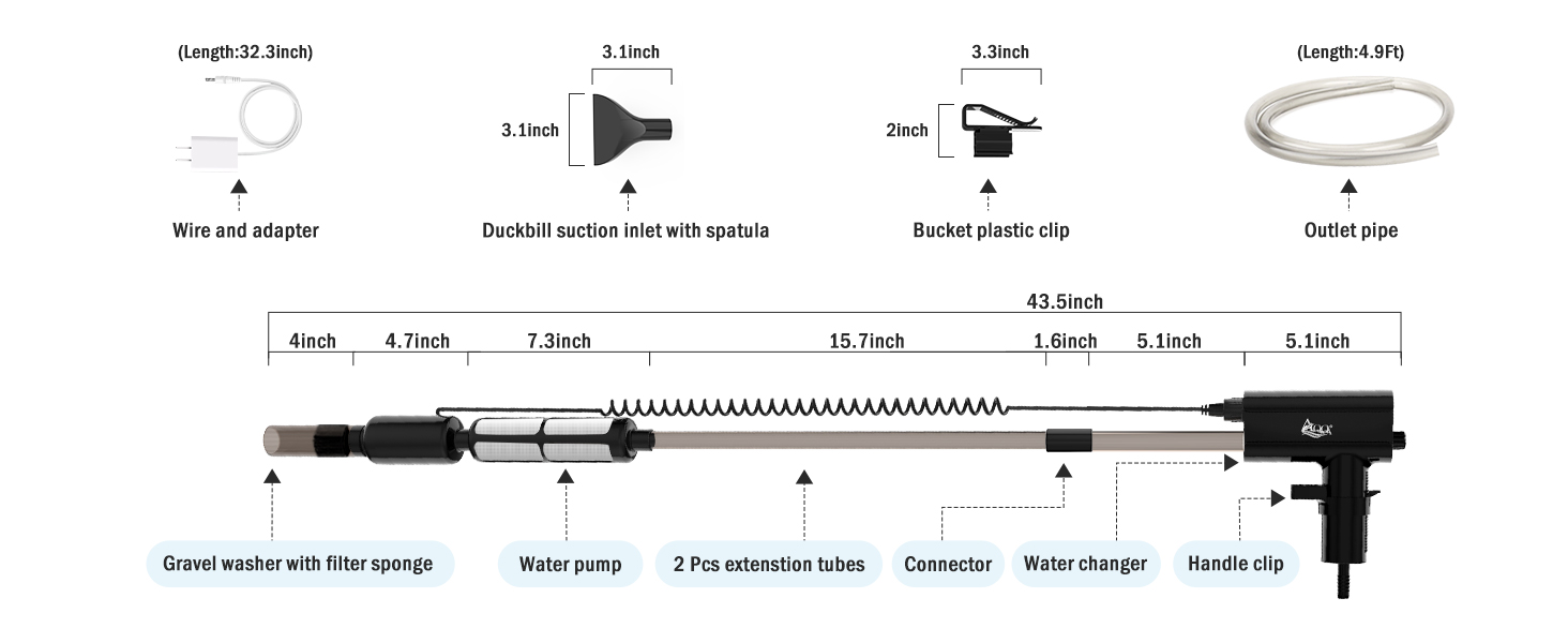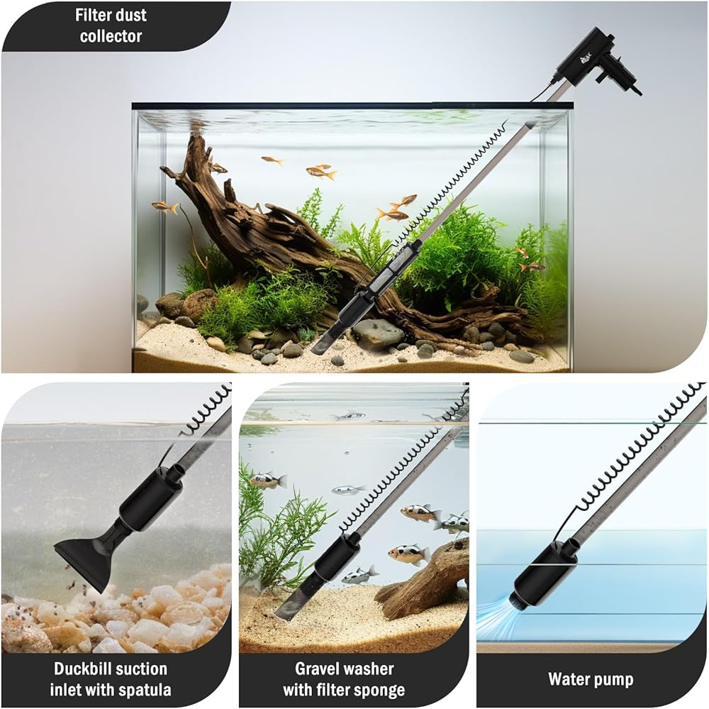 🌀【غسل الرمل، ومغير الماء، وإزالة الأوساخ】يمكن لمضخة المياه إضافة الماء أو تصريف الماء بسرعة، ويمكن لمضخة المياه إضافة الماء أو تفريغ الماء بسرعة، ويجب أن يكون مستوى المياه البداية أعلى من مضخة المياه. يمكن لمضخة المياه تصريف كل المياه، وتستخدم فقط في البيئات التي لا تحتوي على رمل. يمكن لغسالة الحصى مع إسفنجة مرشحة تغيير الماء وغسل الرمل بشكل متزامن، لمنع انسداد مضخة المياه. يمكن لمدخل الشفط منقار البط مع الملعقة إزالة الأوساخ.