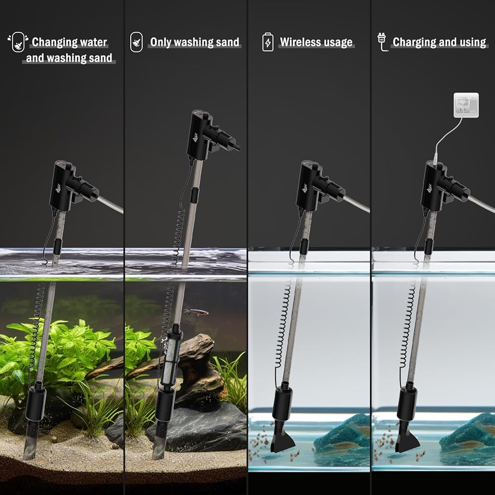 🌀【مكنسة كهربائية لحوض السمك قابلة لإعادة الشحن】منتج جديد قابل لإعادة الشحن، خالٍ من قيود الأسلاك ويمكن استخدامه في أي مكان بعيدًا عن المقابس. سهل التجميع والتفكيك، كما أنه مناسب للاستخدام المحمول والخارجي. محرك قوي قياسي حقيقي 6 وات، تخلص من حدود فرق الارتفاع لمنتجات السيفون.