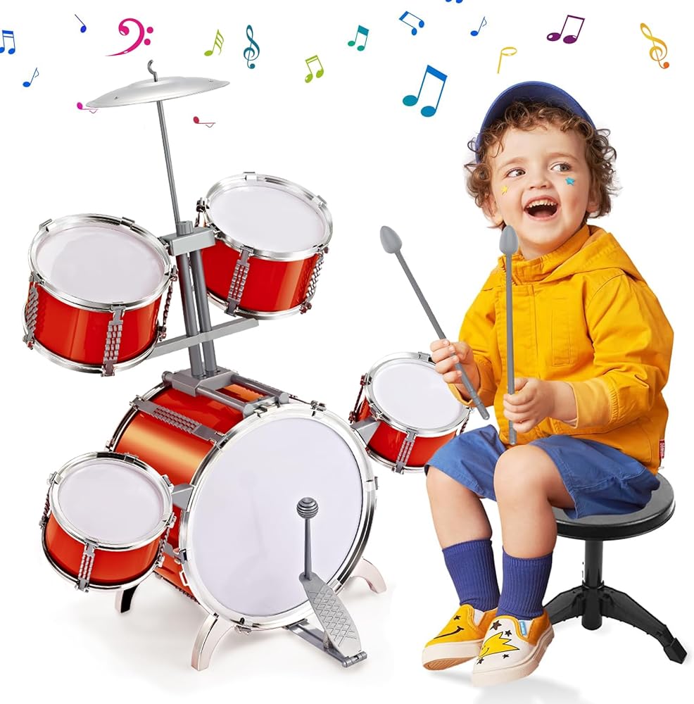 The Contixo Toddler Drum Set is an excellent choice for young music lovers. This comprehensive kids drum sets for 2-5 includes five drums: one bass drum, two medium drums, and two snare drums . Additionally, the kids drum sets for 4-6 comes with a drum stool, an alloy cymbal, and two drum sticks, ensuring that kids have everything they need to start playing right away.