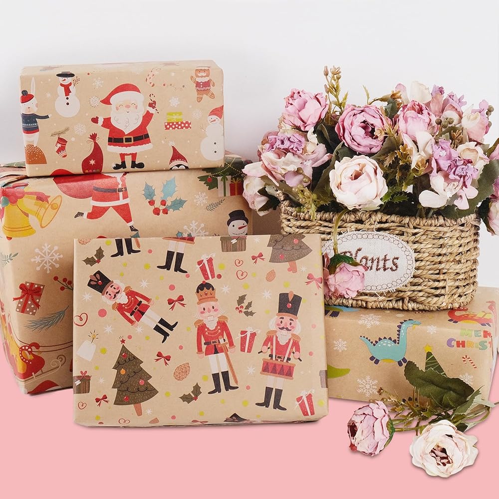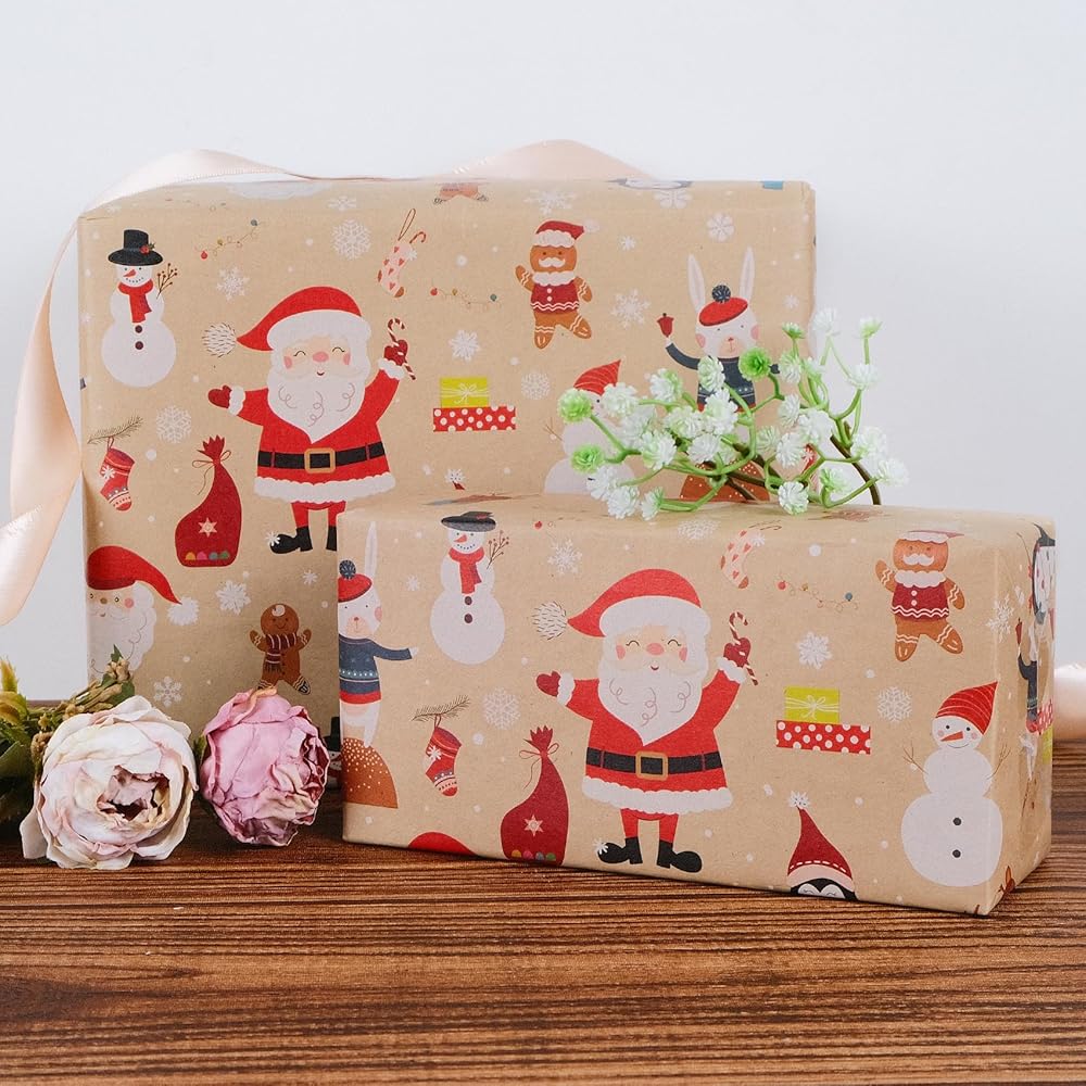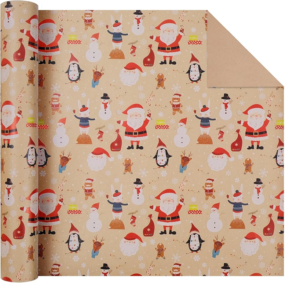 متعدد الأغراض - جانب واحد من ورق كرافت بني أنيق وجانب آخر مطبوع بتصميمات، لا يمكن استخدام ورق التغليف هذا كورق تغليف عيد الميلاد فحسب، بل إنه رائع أيضًا للأغطية ومفرش الطاولة والمشروعات اليدوية وغيرها من الإلهام.