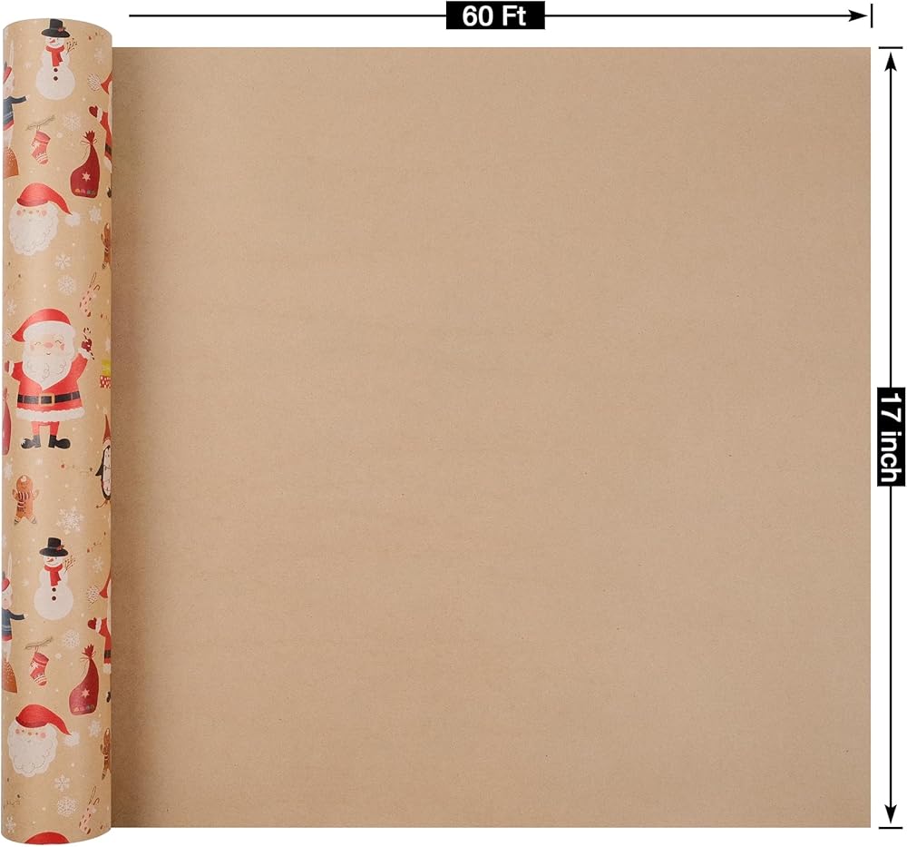 المقاس - يبلغ مقاس لفة ورق تغليف عيد الميلاد من كرافت هذه 43.18 سم عرضًا و32 قدمًا طولاً بإجمالي 45.3 قدمًا مربعًا.
