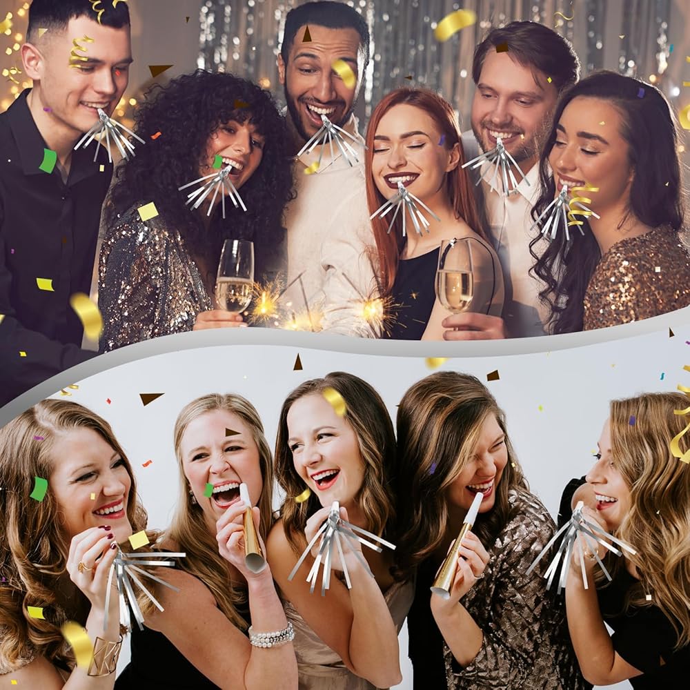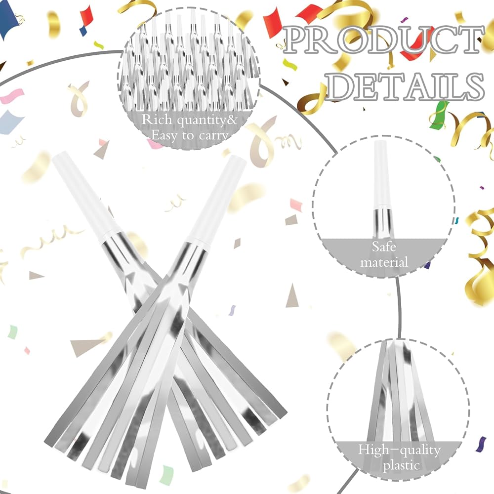These funny party horns can produce funny and cheerful sounds and liven up the party atmosphere, can be applied for decorating New Year party, Christmas party, birthday party, sporting events, celebration and other festival parties.