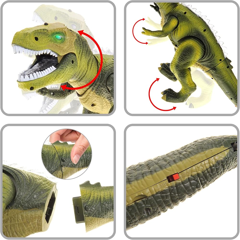 • واقعي | تم تجهيز لعبة الديناصورات التي تعمل بالتحكم عن بعد بأذرع وأرجل متحركة لتقليد تي ريكس الحقيقي لتعزيز تجربة اللعب من خلال تمكين الأطفال من خلق أوضاع مختلفة والمشاركة في سيناريوهات اللعب الخيالية. يمكن للديناصور أيضًا أن يزأر ويأتي مزودًا بأضواء LED ستلفت انتباه أي طفل لساعات طويلة من المرح لإضافة مستوى من الإثارة والانغماس.