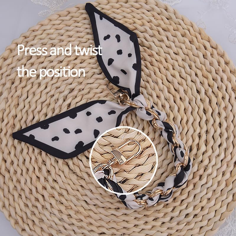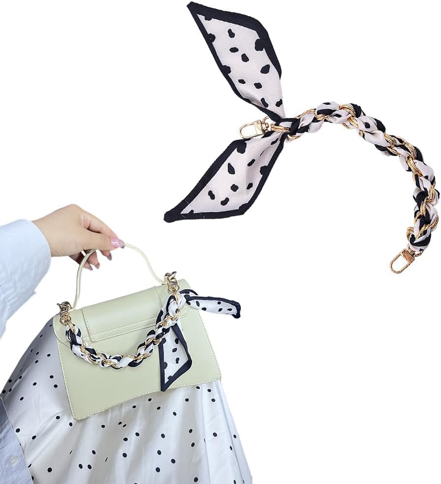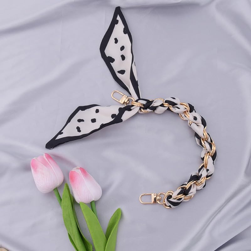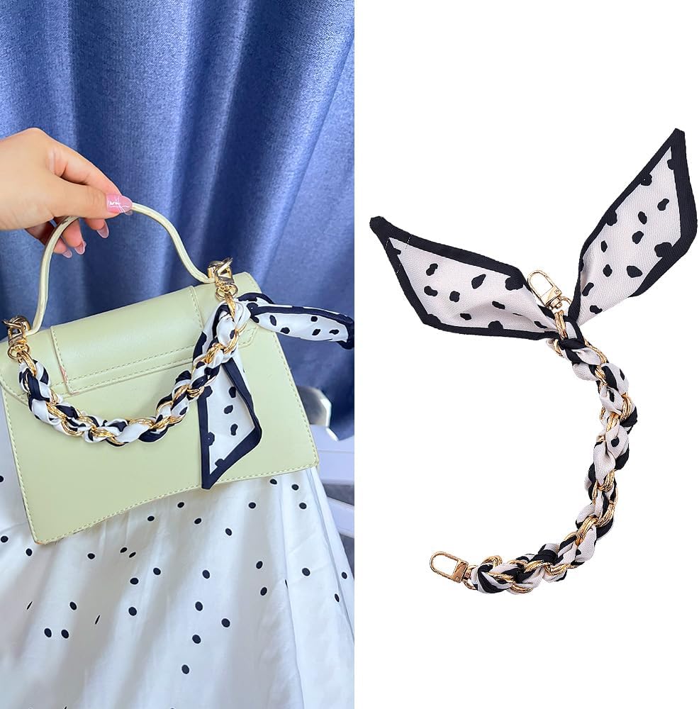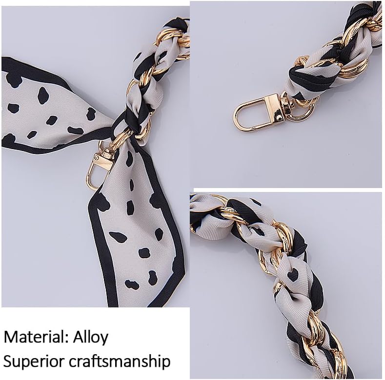 • Quality Bag Handbag Purse Accessories for Women Girls: This silk scarf metal purse bag chain is crafted from alloy and polyester fibre, ensuring a bright and smooth finish, bag charms for handbags chain strp adding elegance to your daily look, purse straps replacement comfortable to hold and won't scratch your skin when used as a bag purse handbag scarf for purse handles