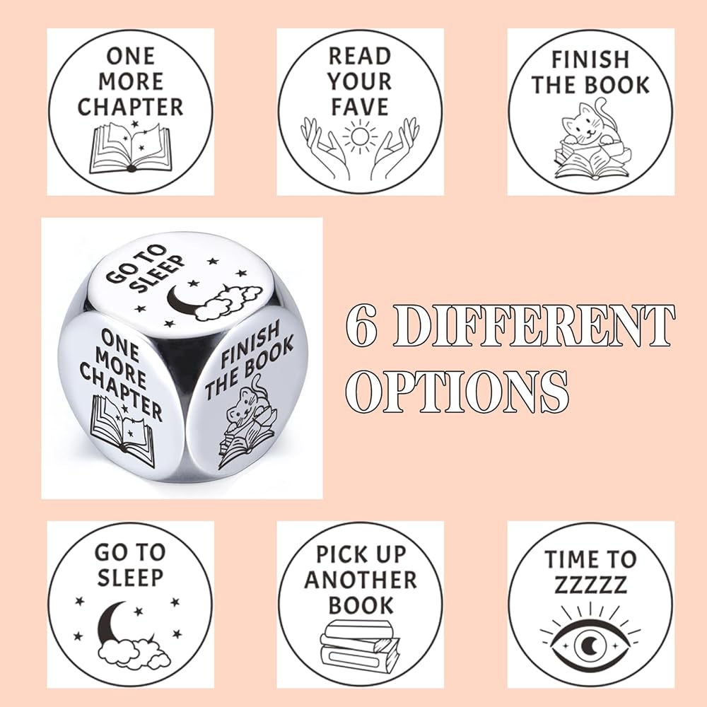 Bookish Gifts for Women: special gift ideas for book lovers, gifts for readers book lovers women, book reader gifts, book stuff for book lovers, presents for book lovers, book lovers gift set. If you always hear about some complain from your couples about how to decision about her/him reading time, this unique dice must be your best choice. It is a very unique choice to give it to your loved ones as a gift at any time.