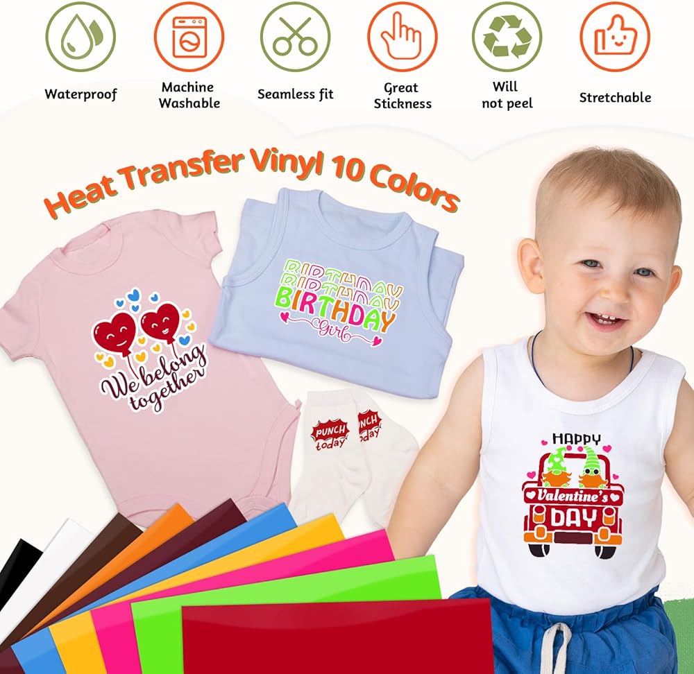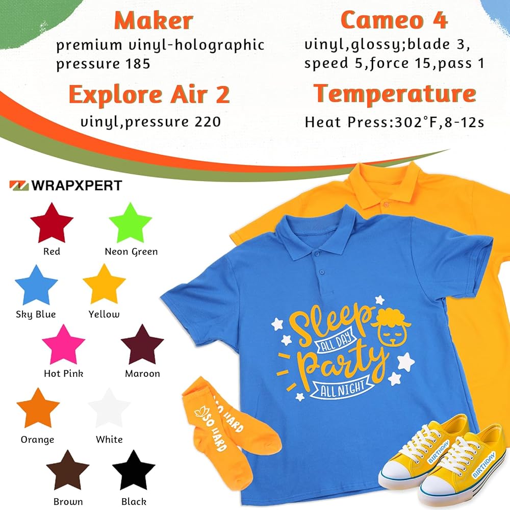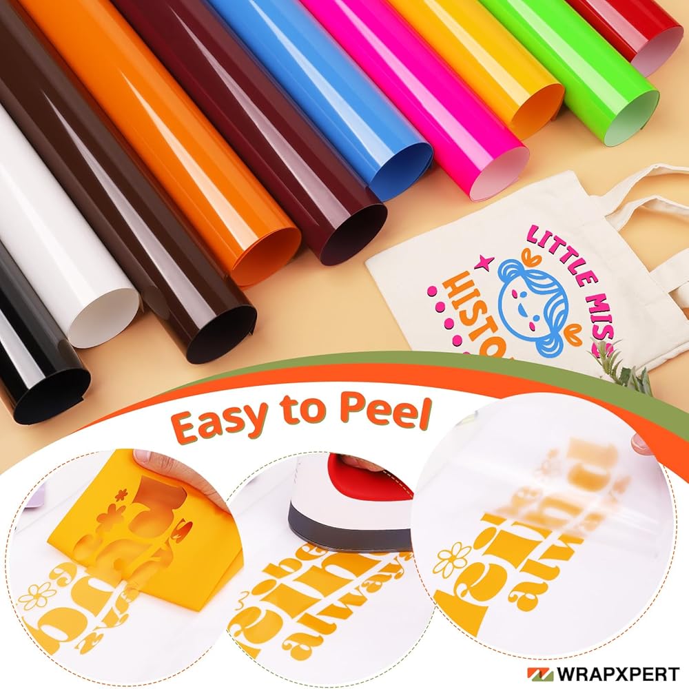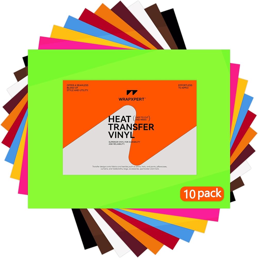 فينيل نقل الحرارة من WRAPXPERT للقمصان مقاس 30.48 سم × 25.4 سم - 10 عبوات من الحديد على حزمة HTV من الفينيل لآلة الضغط الحراري، 10 ألوان متنوعة للملابس والأقمشة التي تصنعها بنفسك