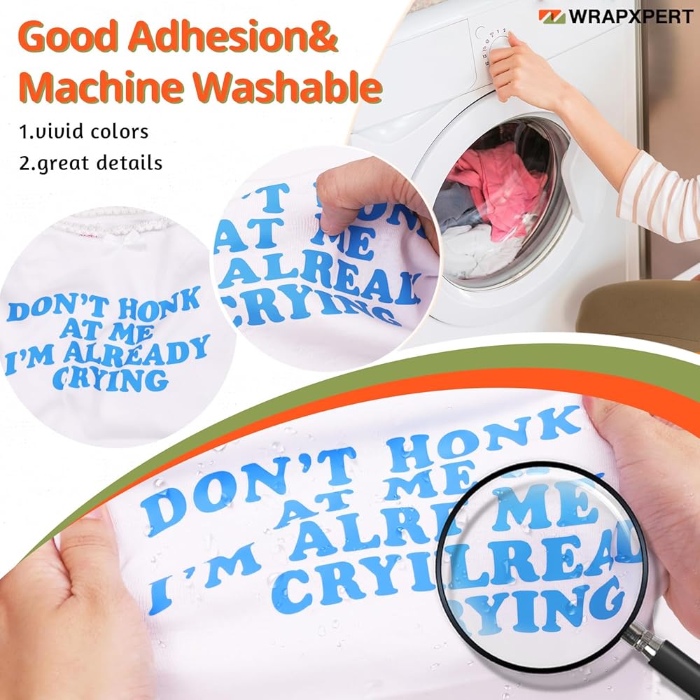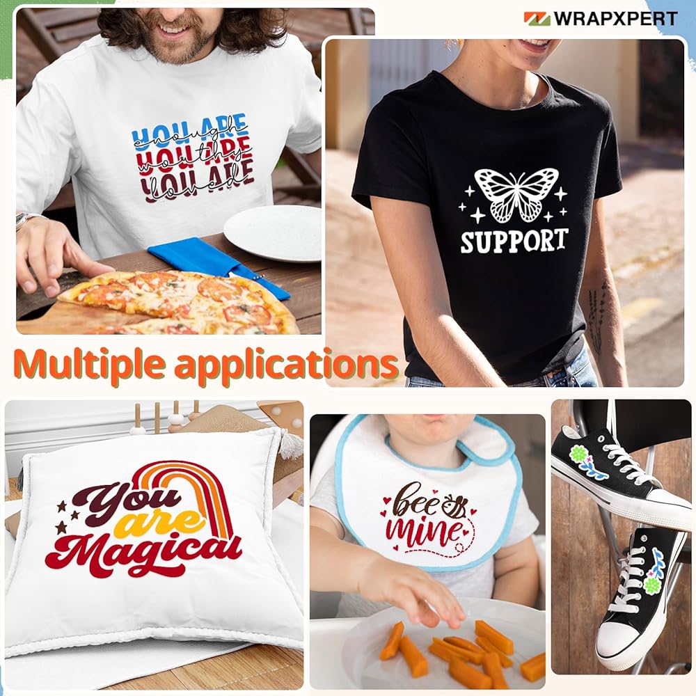 متانة ومرونة رائعتين: مصنوعة من مادة البولي يوريثان، عبوات نقل الحرارة من الفينيل التي شيرت WRAPXPERT ناعمة جدًا ولها مرونة كبيرة، يمكن أن تتمدد مع القماش دون تشوه وتتحمل عدة غسلات دون تقشر أو تشقق أو بهتان. تحتفظ بالألوان والحيوية حتى بعد فترة طويلة. يستخدم.