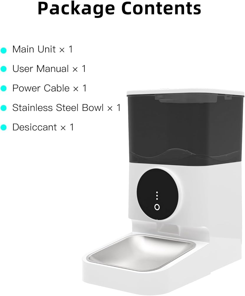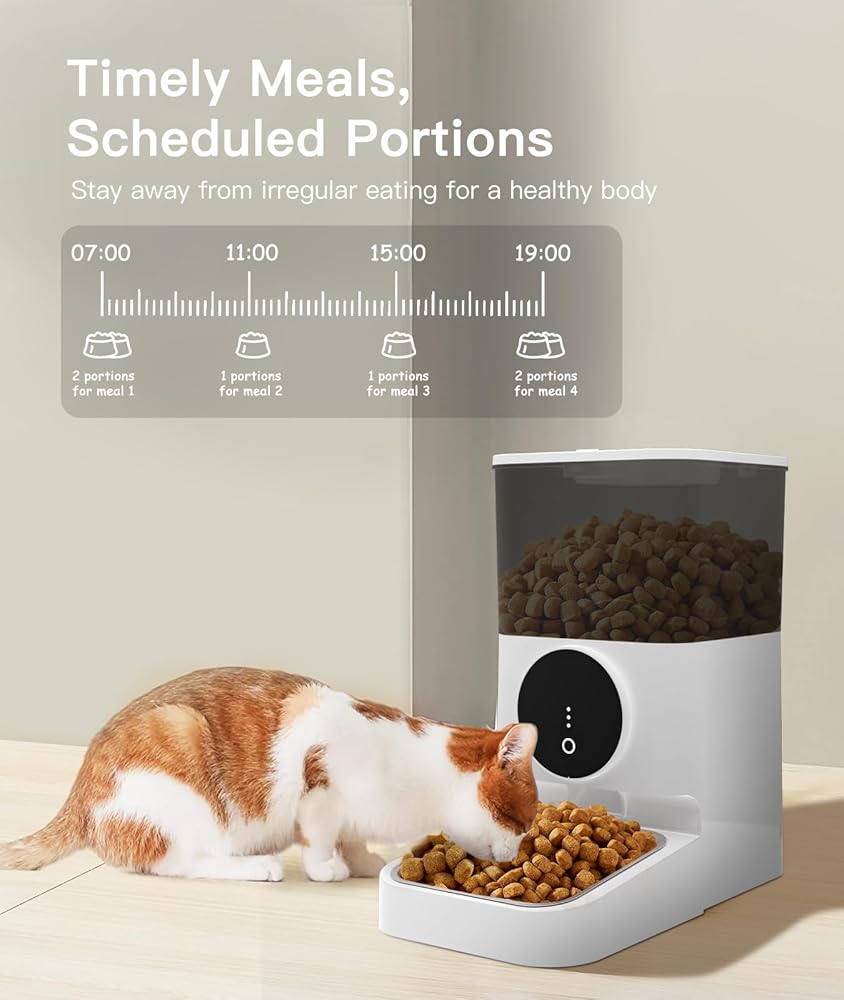 جدولة الوجبات والحصص القابلة للتخصيص: قم ببرمجة ما يصل إلى 4 وجبات يوميًا بسهولة مع التحكم في الحصص القابلة للتخصيص، بحيث يحصل حيوانك الأليف على الكمية المناسبة من الطعام في الوقت المناسب. قل وداعًا للأكل غير المنتظم وحافظ على توازن النظام الغذائي لحيوانك الأليف مع إعدادات الحصص الدقيقة