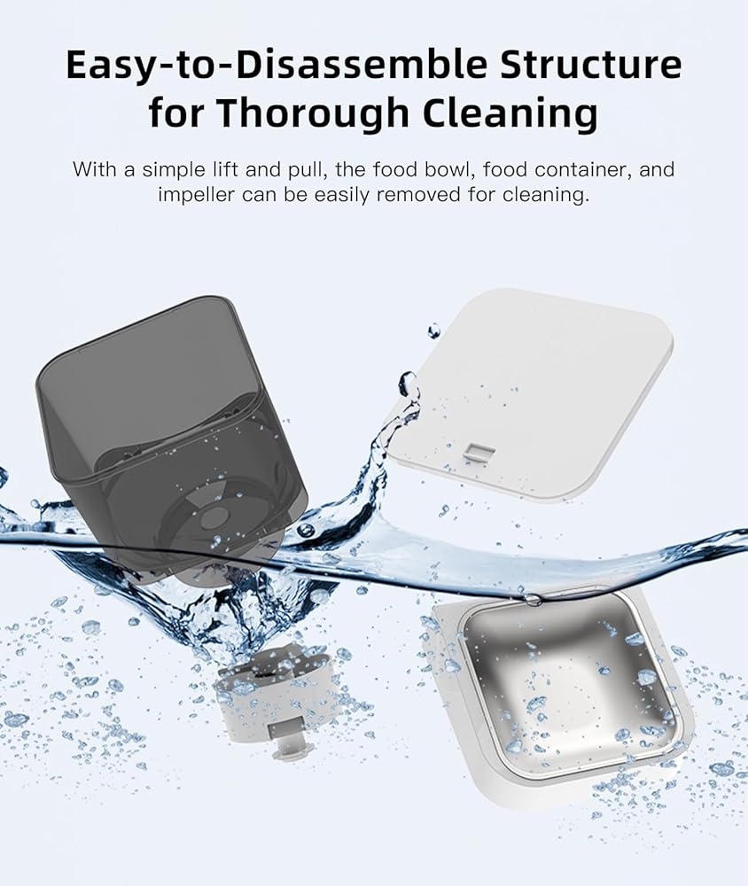 سهل التنظيف وصحي: تم تصميمه لتوفير الراحة، ويمكن إزالة وعاء الطعام والحاوية والمكره بسهولة لتنظيف شامل. الهيكل الناعم والبسيط يجعل صيانته سريعة وسهلة، مما يضمن بيئة صحية لوجبات حيوانك الأليف في جميع الأوقات.