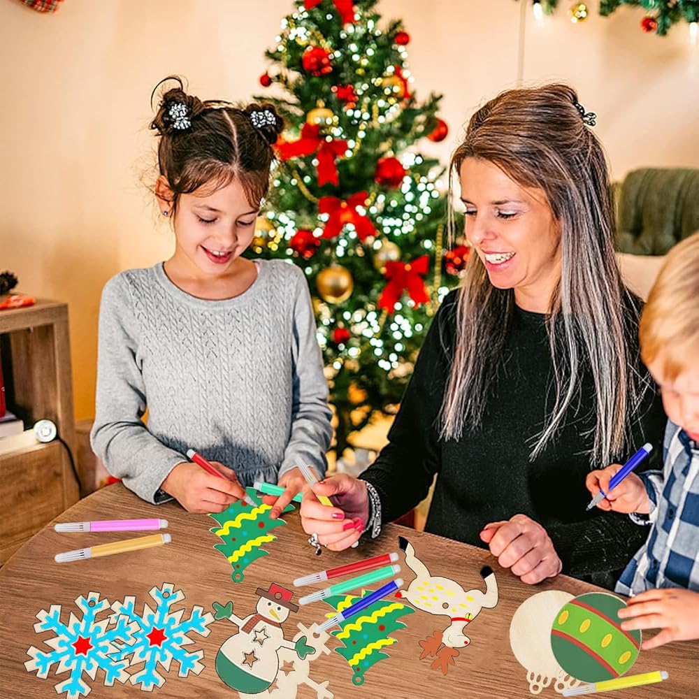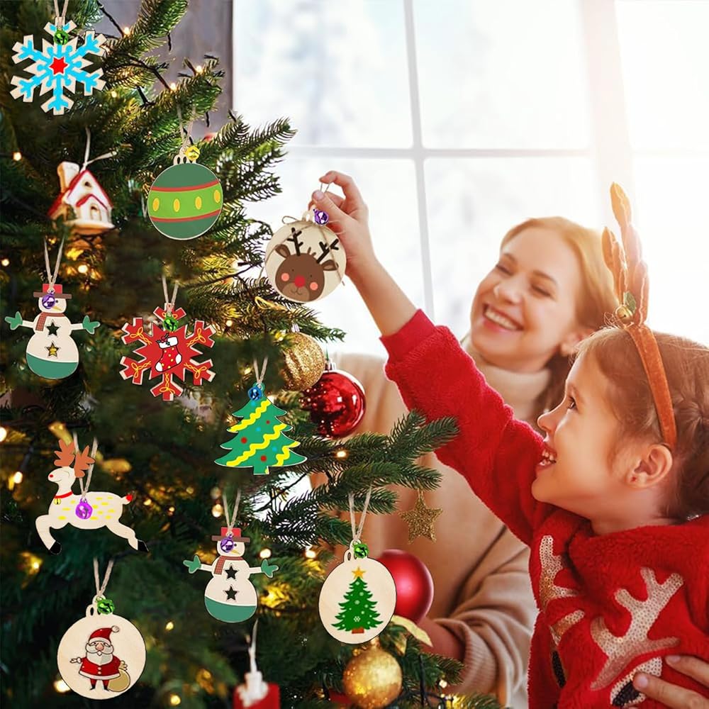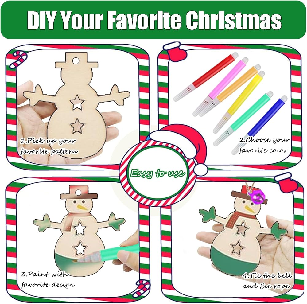 • 【Unique Christms DIY Crafts】: You can paint the blank wooden Xmas ornaments with your imagination to personalize these pieces, each Christmas wooden hanging ornament has a hole, you can tie them with the rope and hang them anywhere; the attached colorful pens, small beautiful bells can help you create your own unique decorations for Christmas.