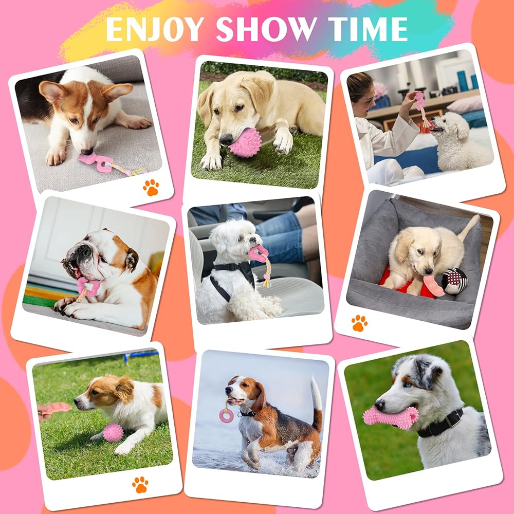• مزيج من 4 ألعاب مختلفة: استخدمنا 3 ألوان شائعة للكلاب. واستخدام مقاسات وأنماط مختلفة لزيادة اهتمام الكلاب، مما يجلب تجارب سعيدة مختلفة إلى طفولتهم.