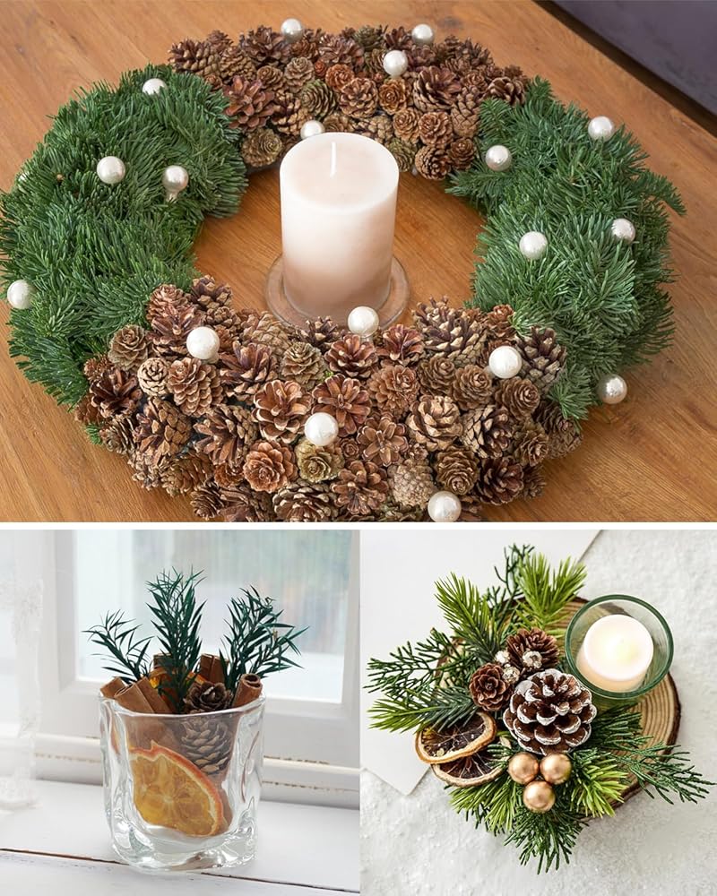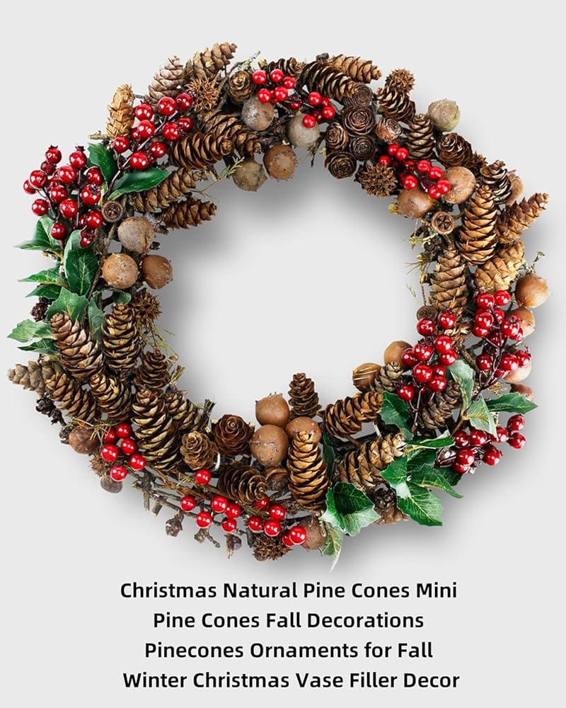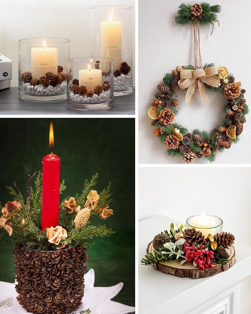 • زينة أكواز الصنوبر: استخدم أكواز الصنوبر هذه كزينة لتزيين شجرة عيد الميلاد أو أكاليل الزهور، مما يضيف إحساسًا بالأناقة الطبيعية والبهجة الاحتفالية إلى مساحتك الخاصة. كما أنها رائعة للعروض الموسمية والأحداث التي تحمل طابع الخريف