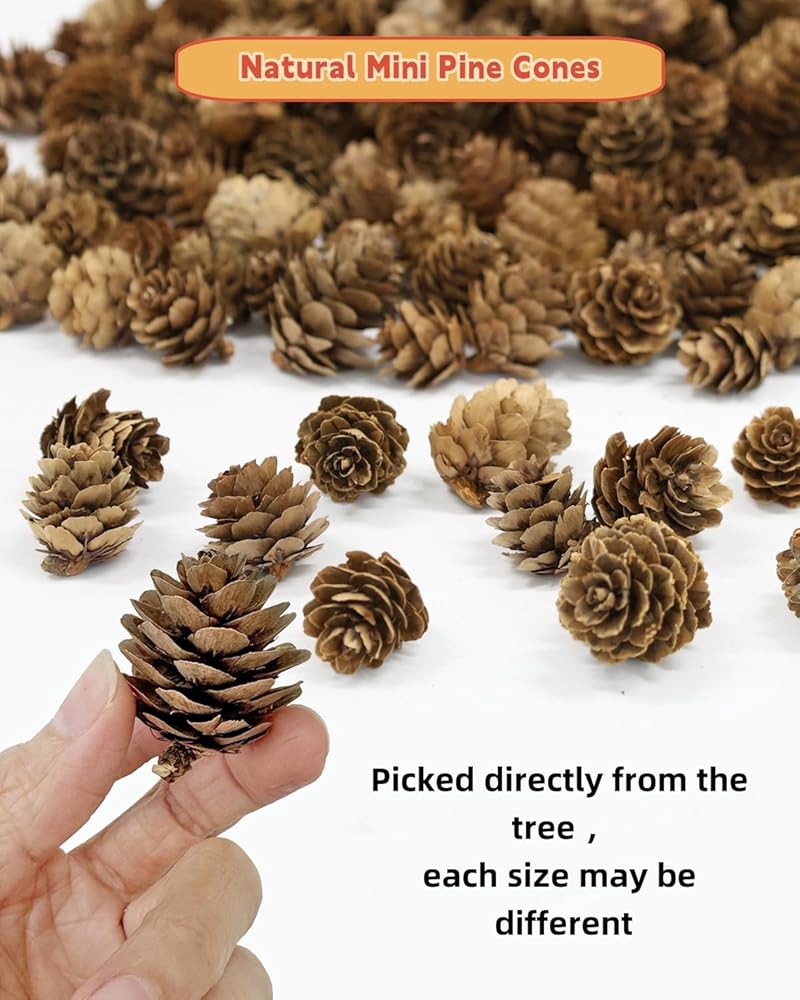 • مخاريط الصنوبر الصغيرة: يتم الحصول على مخاريط الصنوبر هذه من الطبيعة، وديكورات مخاريط الصنوبر الصغيرة طبيعية وآمنة وصديقة للبيئة، ودمج مخاريط الصنوبر هذه في ديكورك يجلب إحساسًا بالهدوء والسلام، ويذكرنا بالمناظر الطبيعية للغابات الهادئة.