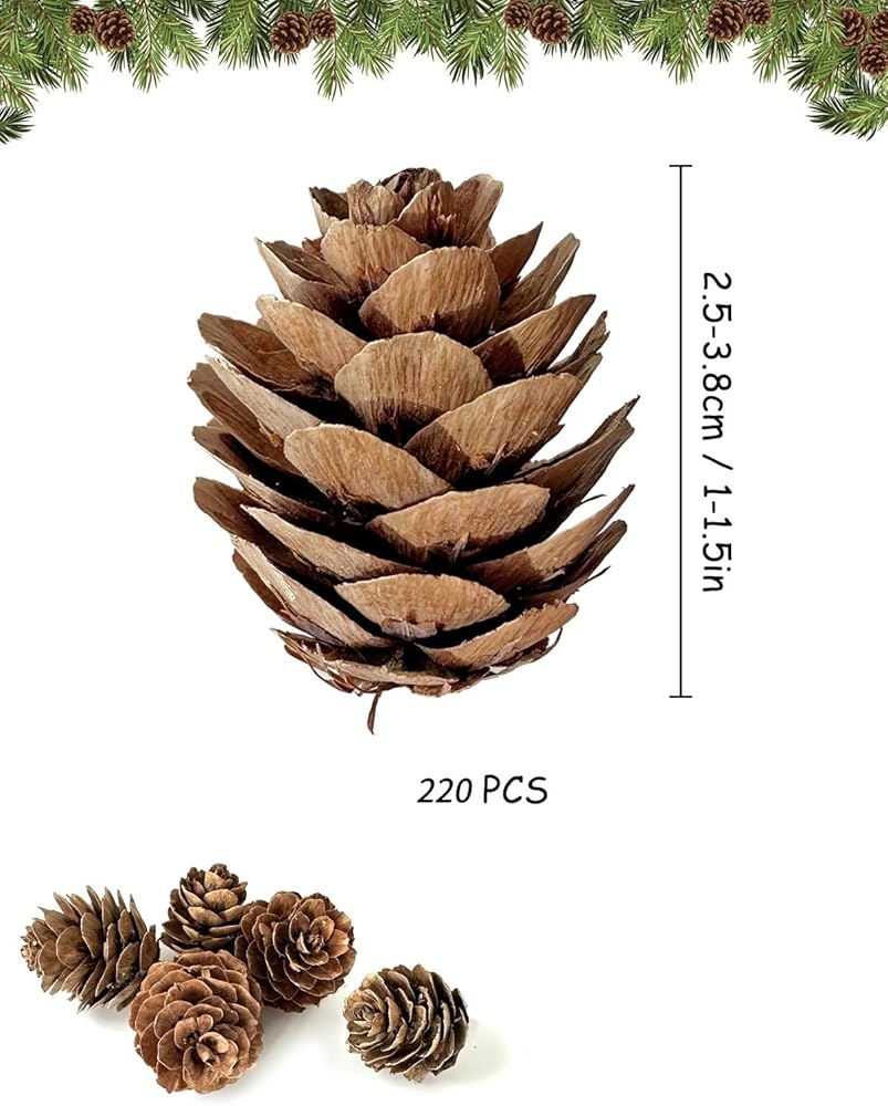 • الحجم: مخروط الصنوبر الصغير حوالي 2-3 سم/0.8-1.2 بوصة، وهو مثالي للحرف اليدوية أو العرض في الأوعية أو المزهريات أو الطاولة أو الموقد أو شموع الإعصار. يمكن أن تلبي جميع طلبات الديكور الخاصة بك
