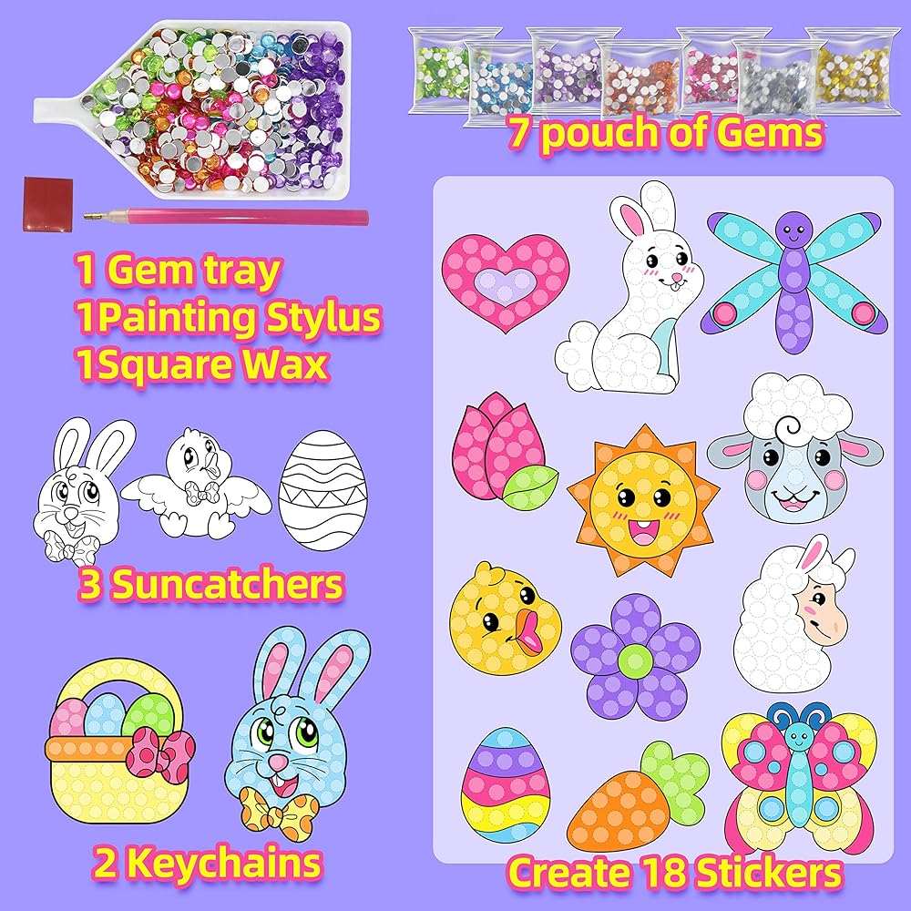 مجموعات طلاء الأحجار الكريمة لعيد الفصح، مجموعة طلاء الماس DIY مع سلاسل مفاتيح Suncatchers، مجموعات فنية للأحجار الكريمة للأطفال والفتيات مع لوازم فنون وحرف عيد الفصح، والأنشطة الإبداعية، وديكورات حفلات عيد الفصح