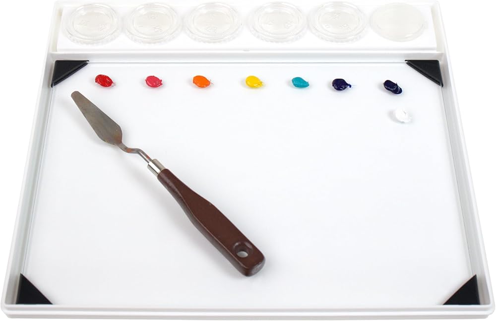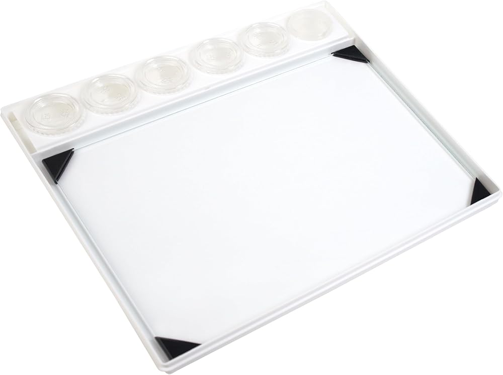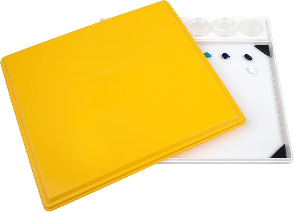 POSH Glass Palettes are available in grey, white, and clear in 9"x12" (also sold in 12"x16" and 16"x20"). Made from 1/8" tempered glass, they feature custom corner guards, softened edges, and a dense solvent- and water-resistant underside (grey and white) for excellent color fastness. The clear model allows customization with your own colors or teaching aids. Versatile and multi-use, use this POSH glass palette for oil painting, miniature painting, acrylic painting, watercolor mixing, gouache, and encaustic art. Easy to clean, dried acrylic paint peels away, and dried oil paint can be removed with artist solvents or a single-edge razor blade in a retractable scraper. Suitable for all paint media, mulling, mono printing, and crafts. Made in Pennsylvania, USA. Developed in 1985, the Sta-Wet Painter's Pal has been constantly improved and is unmatched in functionality. This mid-size palette measures 13in x 12in x 1.5in, with a 9in x 12in mixing area and has an airtight lid, creating an environment to keep your paints fresh between painting sessions. Preserve the freshness of your paints for days or even weeks at a time. The Sta-Wet Palette system uses specially formulated Sta-Wet Acrylic Paper, that is pre-moistened with water, and placed on a saturated Masterson Sta-Wet Palette Sponge. The paint slowly absorbs moisture from the sponge through the paper, maintaining proper paint consistency. The POSH Glass Palette works independently from the Sta-Wet Palette System.