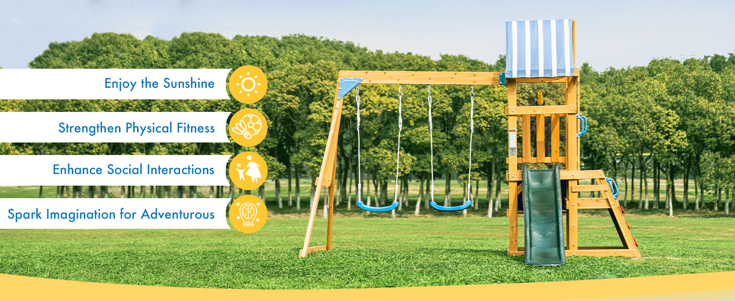 مصممة من أجل السلامة وطول العمر: مصنوعة من الخشب الصلب الفاخر مع لمسة نهائية ناعمة وخالية من الاختباء، مجموعة التأرجح هذه ثابتة ومتينة ومقاومة للرياح القوية، مما يضمن بقاءها في مكانها بشكل آمن. مع سعتها لما يصل إلى 6 أطفال في المرة الواحدة، فهي مثالية للأطفال للتأرجح والانزلاق وتكوين ذكريات دائمة معًا.