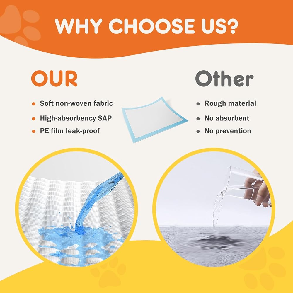 High-Quality Multi-Layer Absorption Puppy Pads: Our product is meticulously crafted with multiple layers to ensure optimal absorption. The premium materials guarantee a clean home while providing comfort for your puppy.