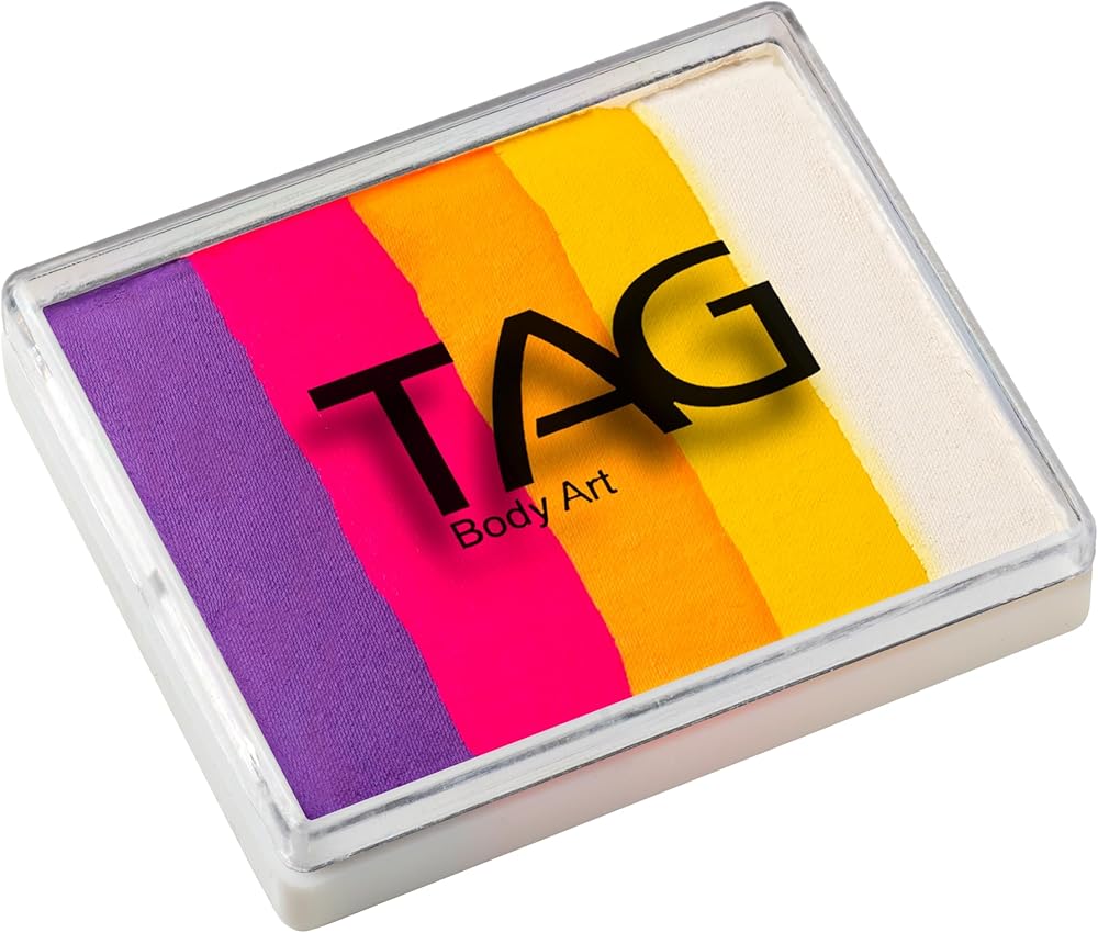 TAG face painting colors are great for line work and creating colorful base designs quickly and easily. High quality, wax-based face paint allows designs to flex with body movements without peeling or cracking. TAG face paint easily blends in comfortably and is gentle on skin. Activates easily with minimal amount of water. Comes in a rectangular case, approximately 2 Inch wide and 2 1/2 Inch long.