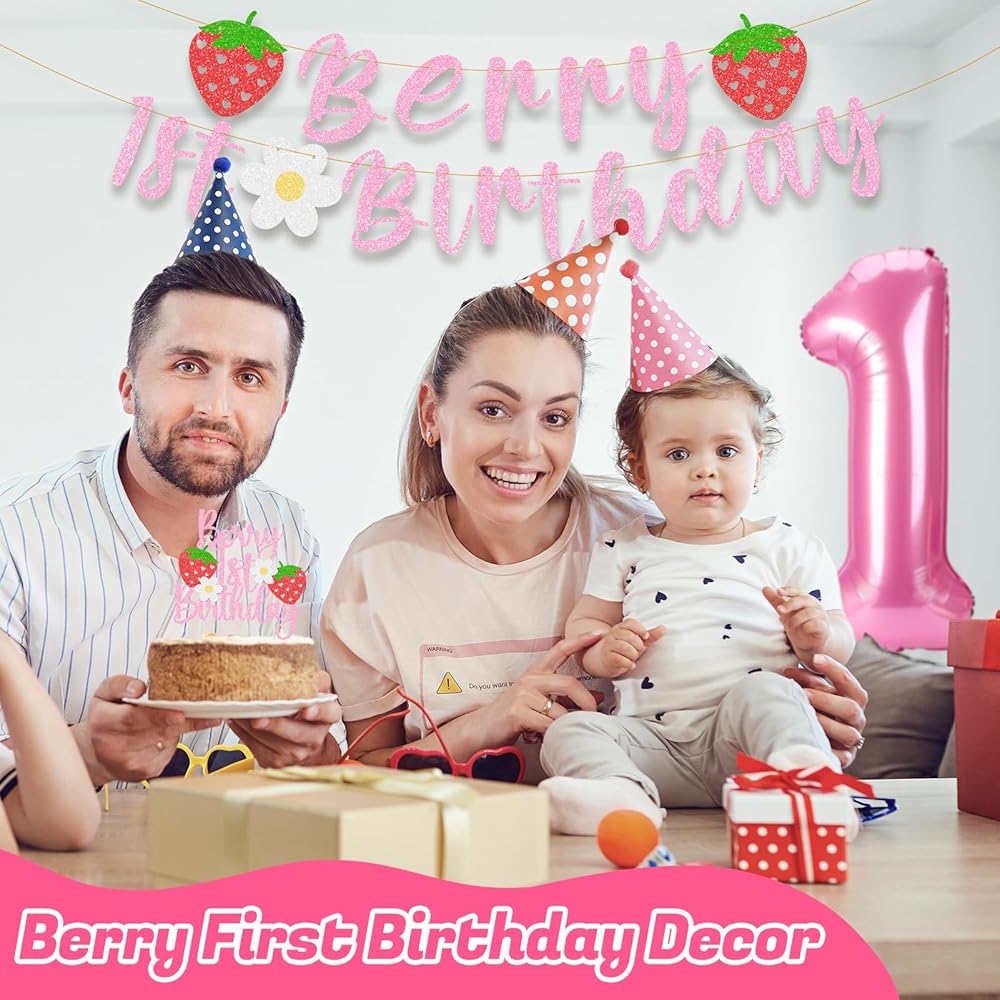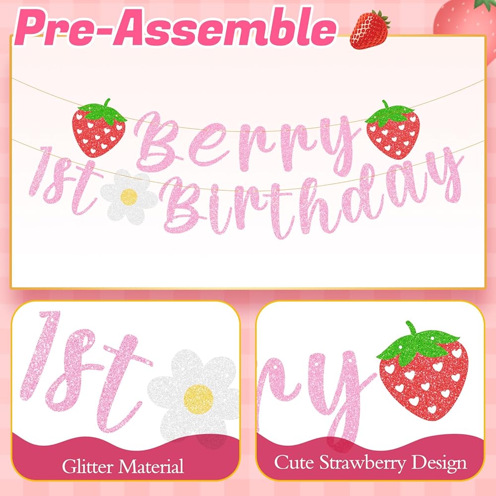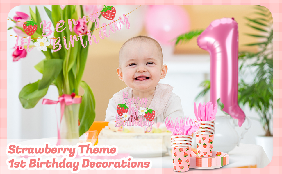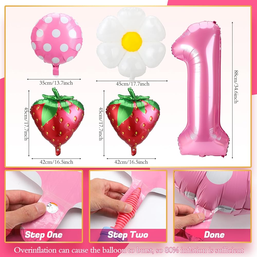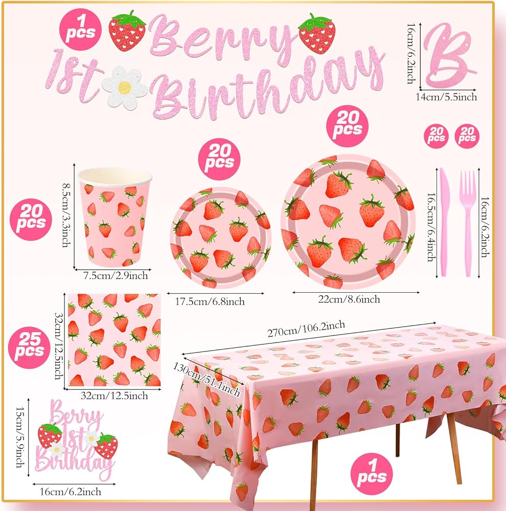 ديكور حفلات الفراولة: تصميم ديكورات حفلات عيد الميلاد الأول لدينا بنمط فراولة لطيف، قم بتزيين حفلة عيد ميلاد طفلك الأول واخلق ذكريات لا تنسى مع مجموعات حفلات الفراولة هذه