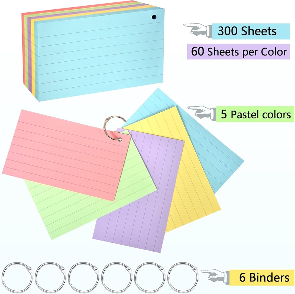 بطاقات الفهرس 3x5، 300 قطعة من بطاقات الفهرس المسطرة مع حلقة، بطاقات فلاش الفهرس الملونة المبطنة على كلا الجانبين، بطاقات الملاحظات الثقيلة، بطاقات الدراسة، لوحة خدش للمدرسة والمكتب المنزلي