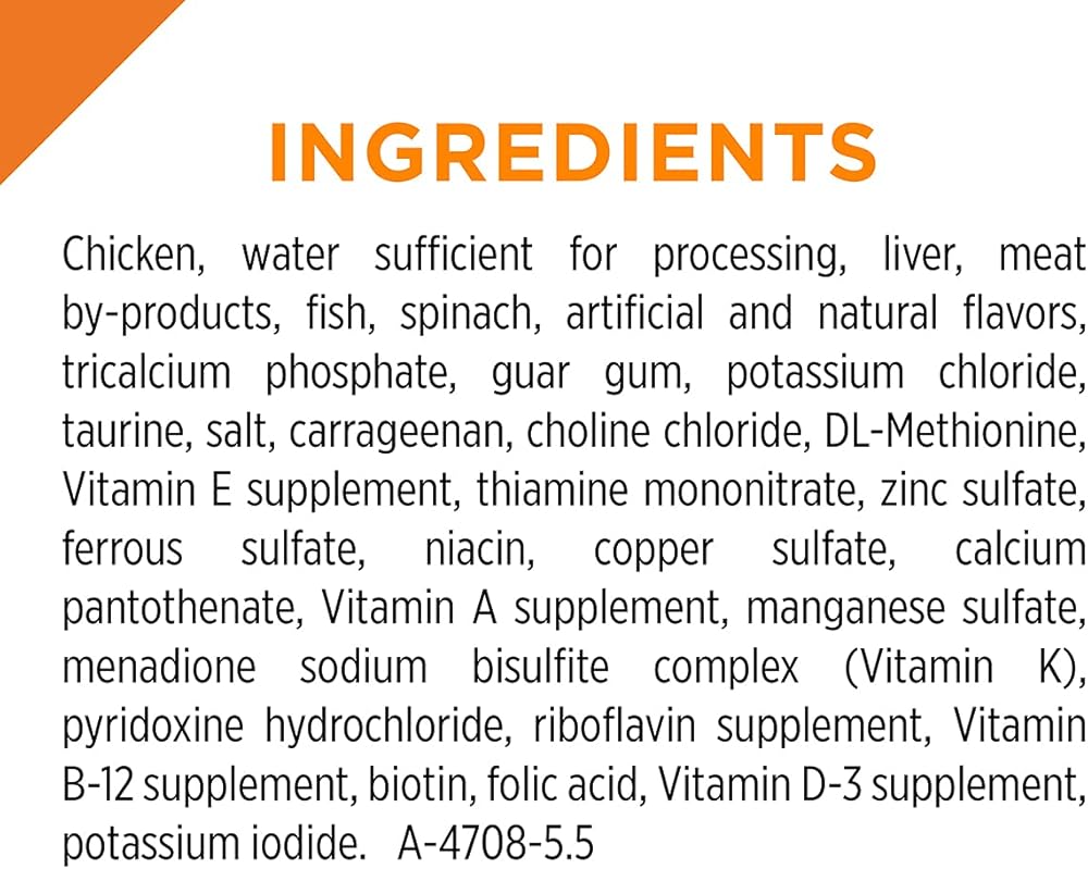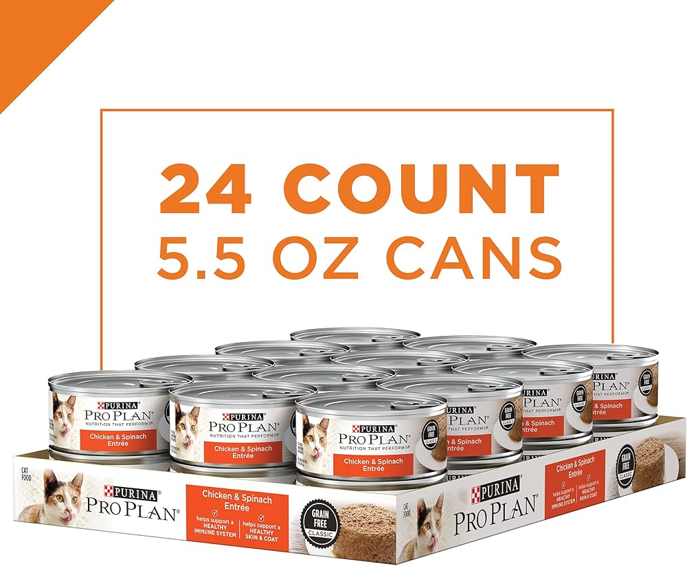 Support your cat's healthy, active life with Purina Pro Plan COMPLETE ESSENTIALS Grain Free Ocean Whitefish and Tuna Classic Entree adult wet cat food. Real ocean whitefish and tuna in this cat wet food help provide protein to support strong muscles. Our Pro Plan wet cat food pate has a finely ground texture that's easy to eat. Every high-quality ingredient in this cat pate is chosen for a specific purpose. Your adult cat gets the 100 percent complete and balanced nutrition she needs to thrive plus 25 essential vitamins and minerals to help support overall health. A high protein level helps maintain lean muscle. Vitamin A and taurine, an amino acid, support vision, and antioxidants support immune health. Our grain free cat food has no corn, wheat or soy, and it has no artificial colors or preservatives. Purina Pro Plan soft cat food pate gives her a taste she loves and the advanced nutrition she needs. We manufacture this high protein canned cat food at Purina-owned, U.S. facilities.